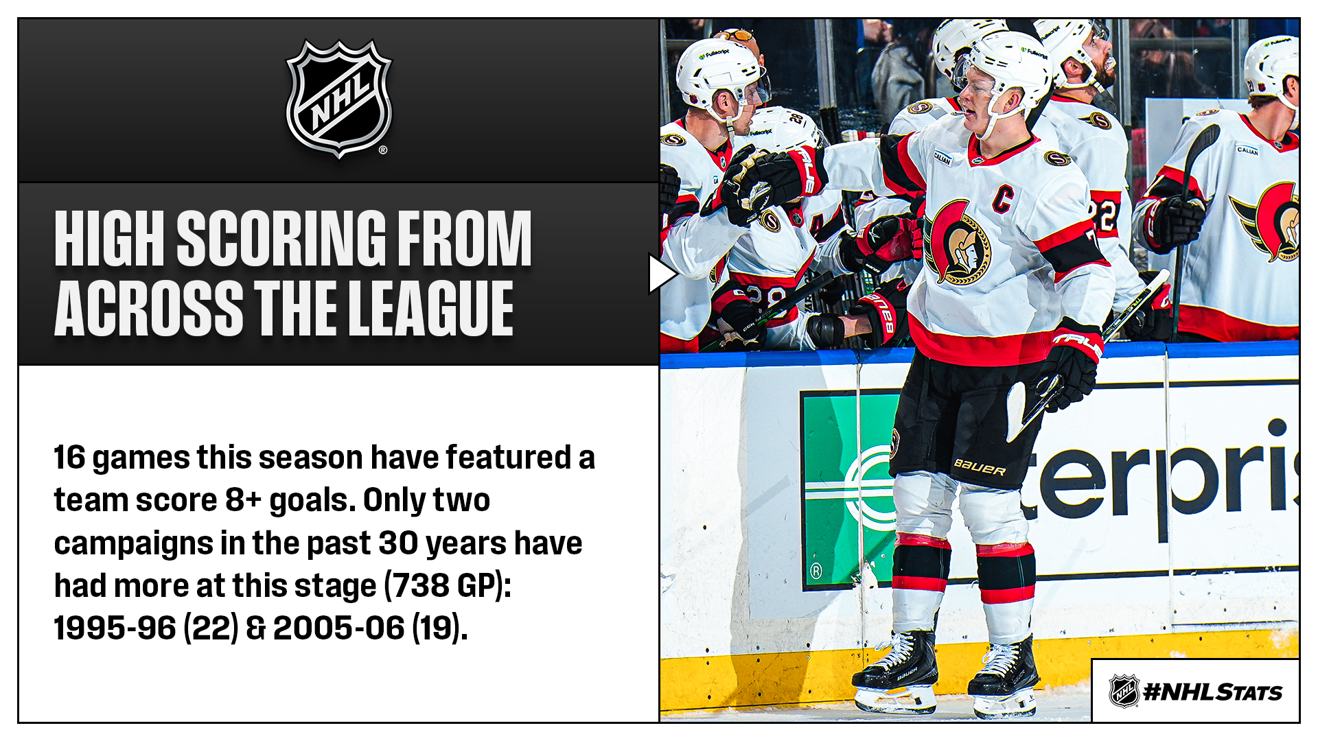 Brady Tkachuk (1-3—4) scored his 200th NHL goal and recorded his second career four-point game to help Ottawa score eight goals in a contest for the first time since Oct. 29, 2024. It marked their highest output on the road since they scored eight in Florida on Dec. 14, 2021. The Senators featured seven players with a multi-point game for the first time since Oct. 14, 2024 (7 vs. LAK).