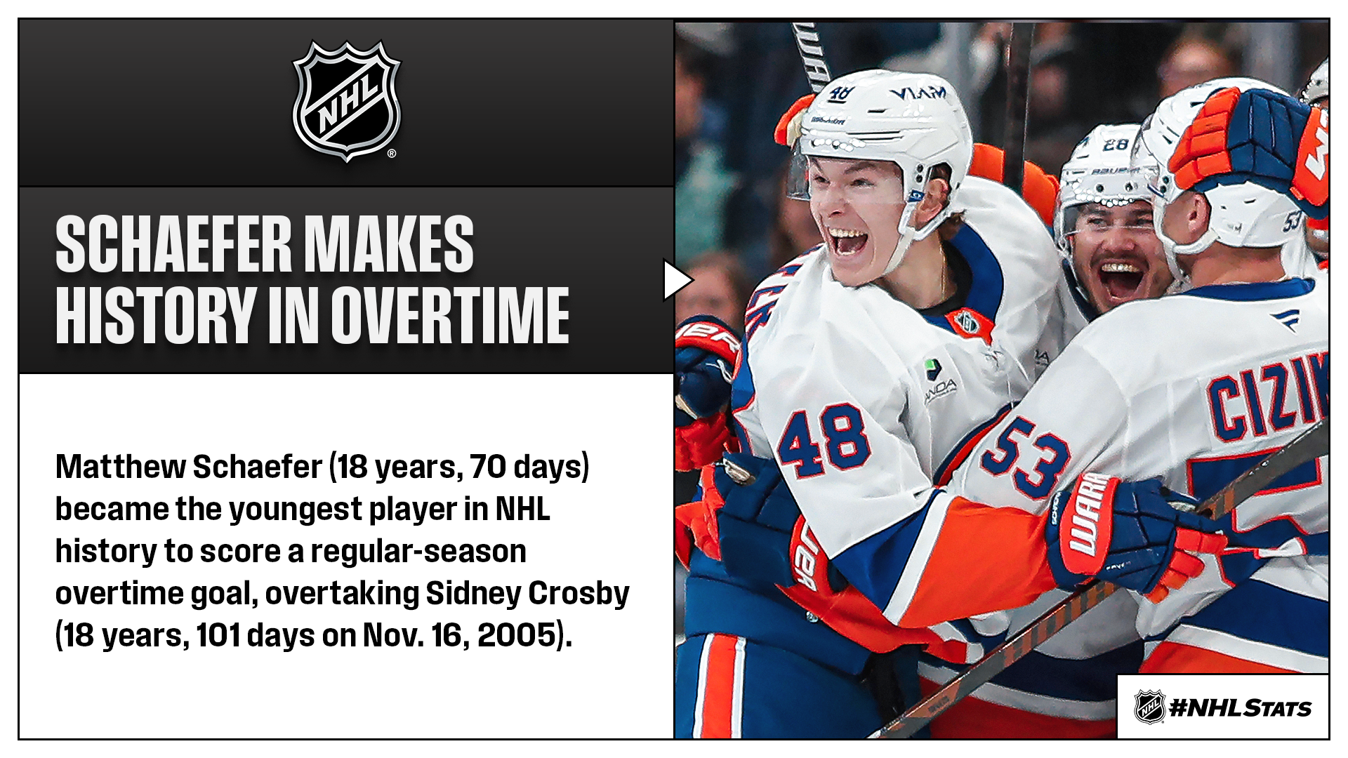 * Matthew Schaefer became the youngest player in NHL history to score a regular-season overtime goal, capping the first day in League history in which all regular-season contests required extra time (min. 4 GP).