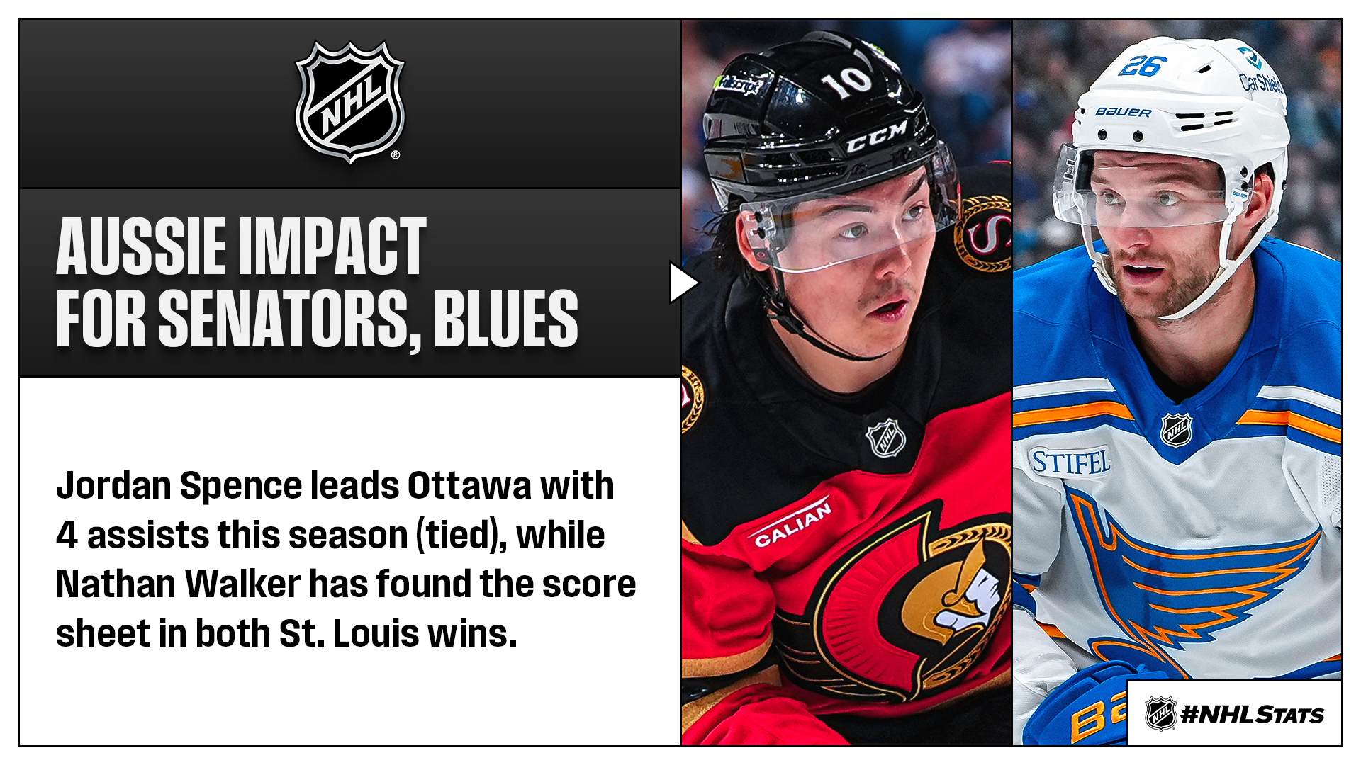 * Two players with ties to Australia are likely to be in action as part of Saturday’s 13-game slate: Nathan Walker of the Blues and Jordan Spence of the Senators. To date, Walker is the only Australian national to play in the NHL, while Spence is the only Australian-born player to do so. The Blues and Senators are slated to meet twice this season (Nov. 28 and Dec. 6). Click here for an NHL.com feature on how Walker is leading the charge to promote hockey in Australia.