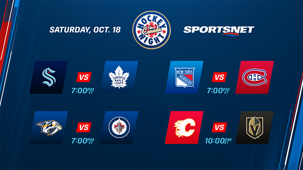 Seattle vs. Toronto is the theme of the weekend in the sports world, with the Kraken and Maple Leafs set to square off on Hockey Night in Canada as the cities also go head-to-head in the MLB Postseason – part of a four-game slate on Sportsnet that includes an Original Six matchup and two divisional clashes in the Western Conference.