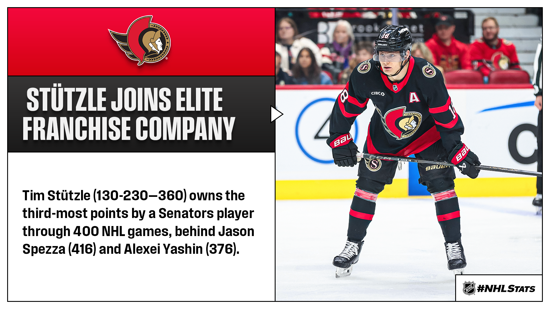 STÜTZLE COLLECTS POINT IN 400TH NHL GAME IN #NHLSTATS: LIVE UPDATES