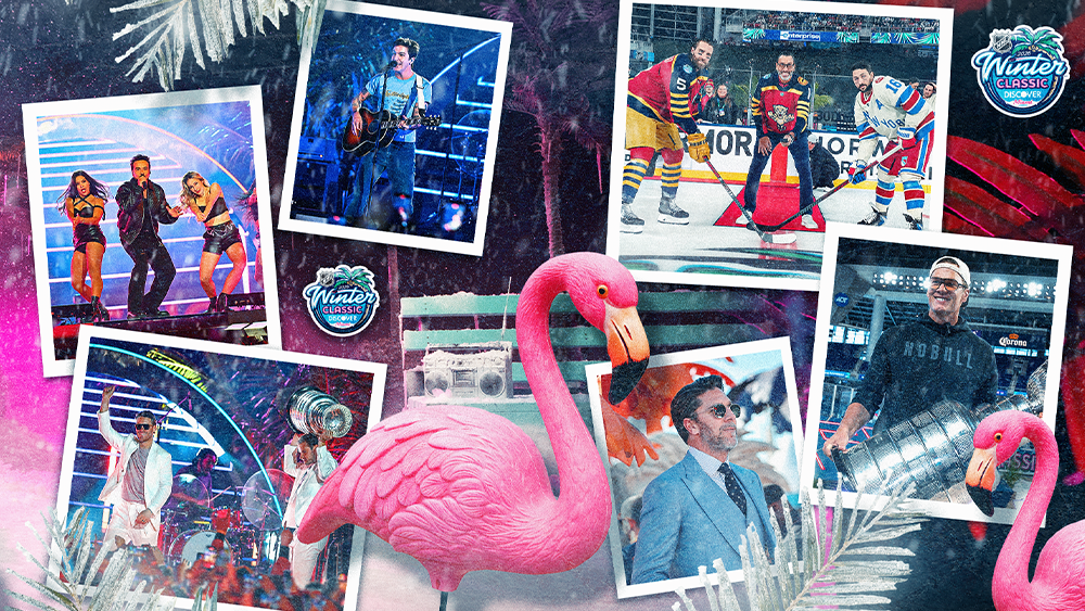“Snowy Winter Comes to Sunny Florida” was the theme for the 2026 Discover NHL Winter Classic and it came to life in Miami on Friday night as “snow” came down inside loanDepot park as the roof opened before puck drop. On the field, the sand/snow split at center ice where fan-favorite Roberto Luongo dropped the ceremonial puck.