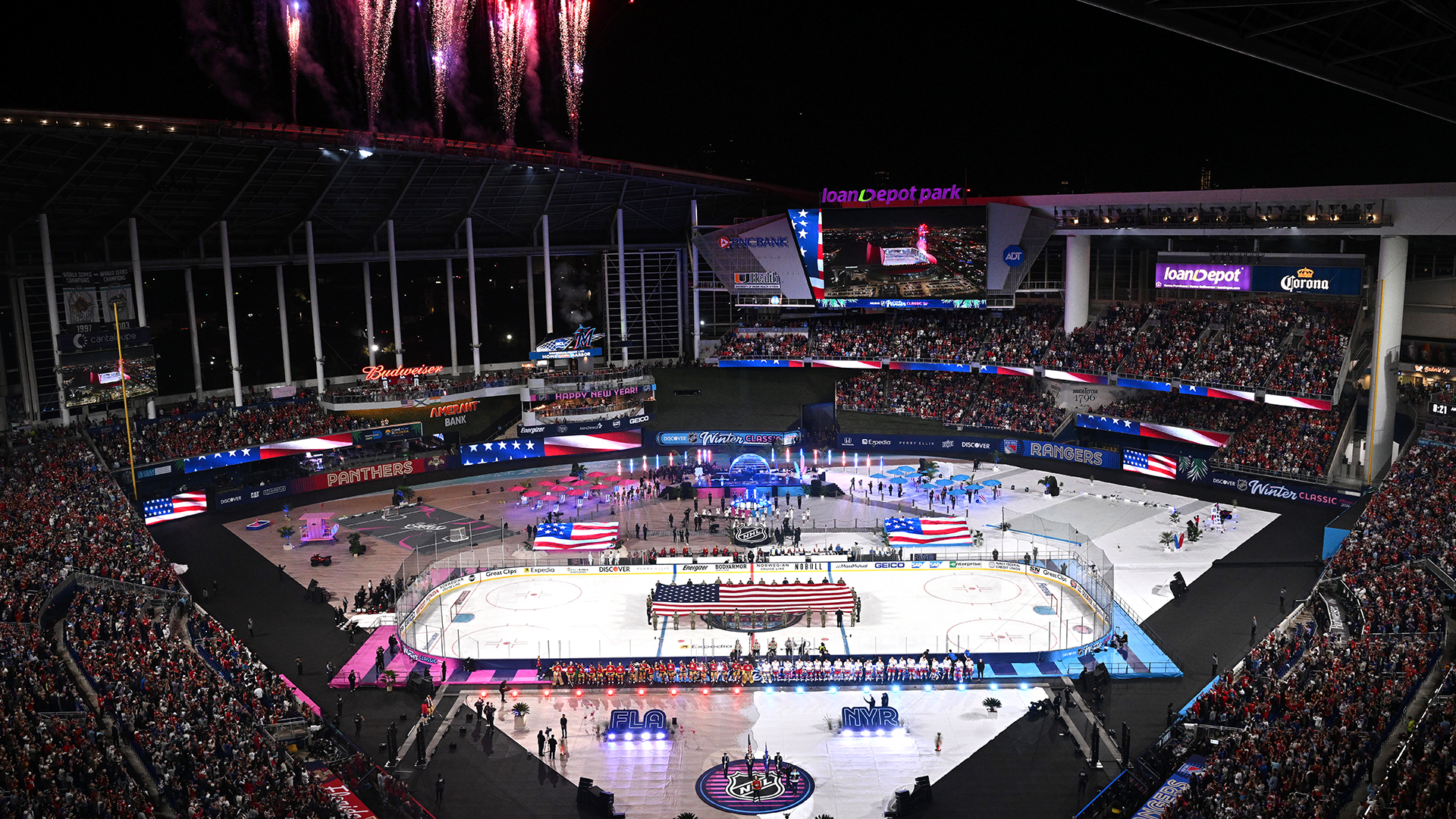 * Another outdoor tradition of handshakes at center ice capped the historic first in Florida as fireworks blasted off the retracted left field windows amid another “snowfall” as the voice of Dean Martin serenaded fans with the winter classic tune, Let It Snow! Let It Snow! Let It Snow!