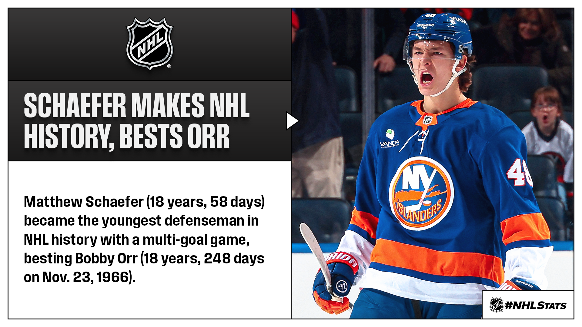 * Matthew Schaefer made NHL history as the youngest defenseman with a multi-goal game and powered the Islanders to a late comeback win.