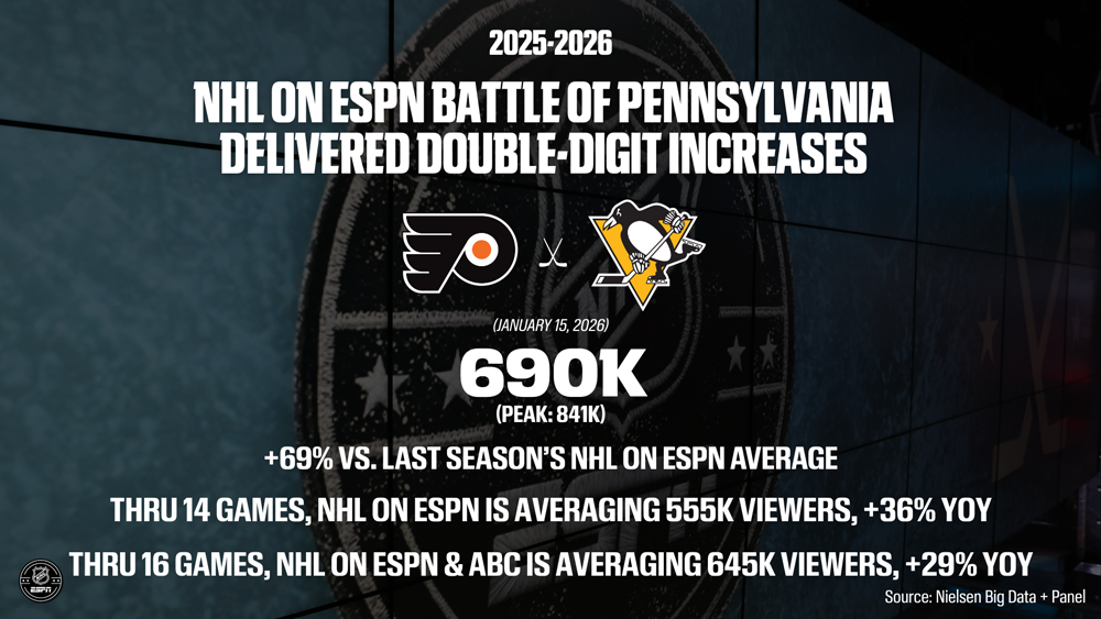 * NHL on ESPN Battle of Pennsylvania delivered double-digit increases