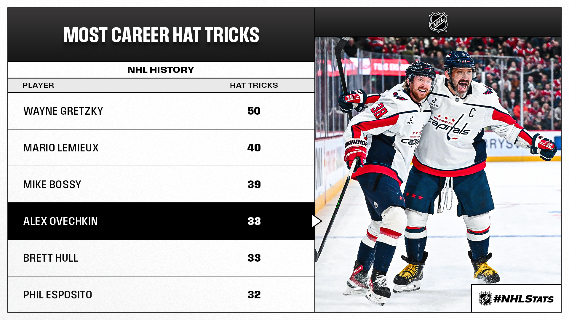 OVECHKIN CLIMBS MORE NHL LISTS WITH 33RD CAREER HAT TRICK, FIRST AT AGE 40