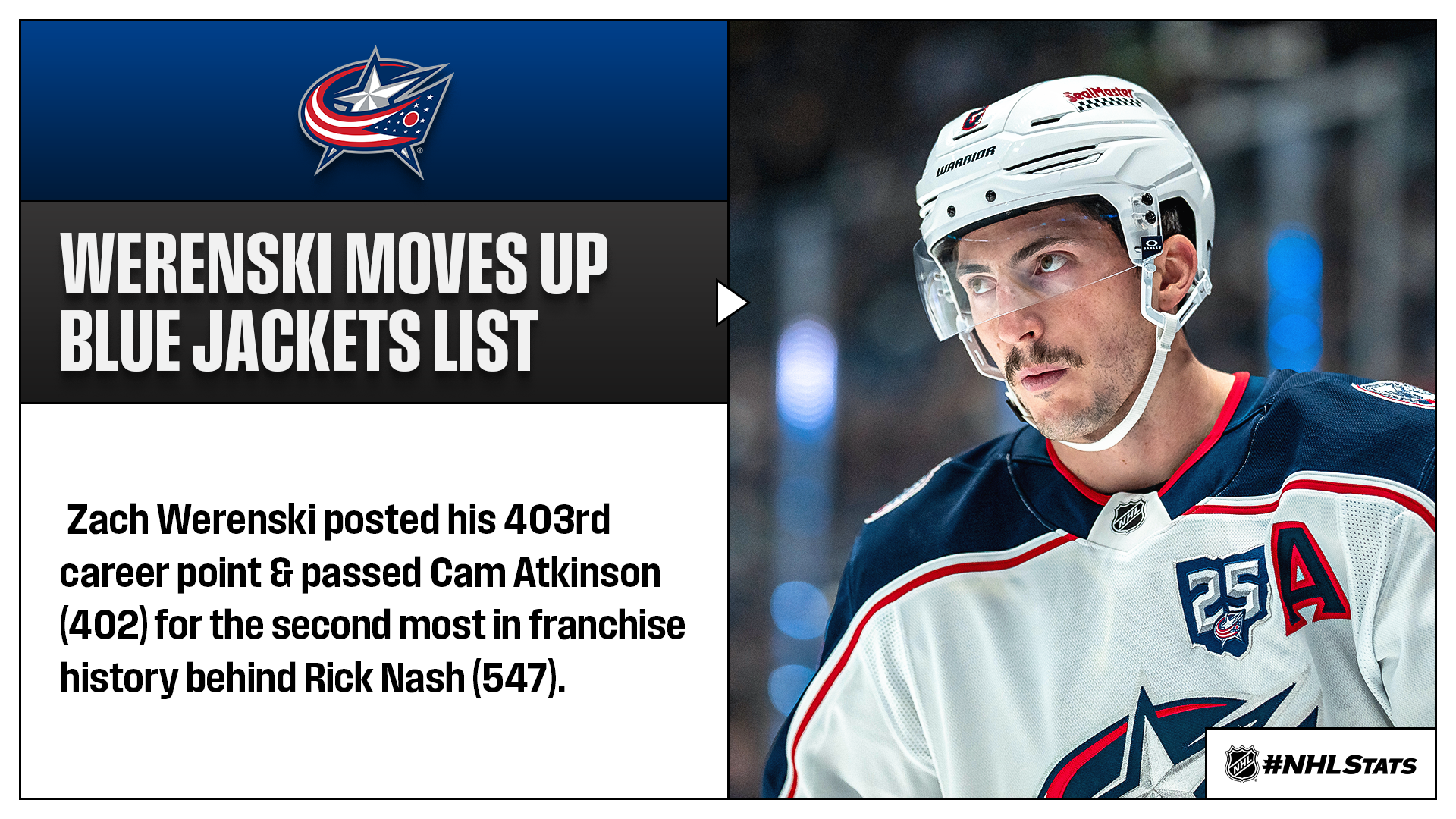 The latest edition of #NHLStats: Live Updates spotlighted several stars from across the 12-game slate, including Columbus’ Zach Werenski (0-3—3) and Adam Fantilli (2-1—3), who each posted three-point games to help the Blue Jackets earn two points.