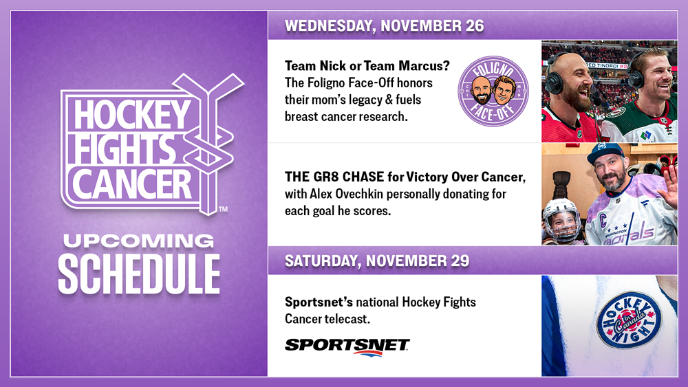 5. Hockey Night in Canada on Sportsnet (Saturday): All six clubs that will be part of Sportsnet’s Hockey Fights Cancer telecast have deep connections to the cause. Maple Leafs forward Dakota Joshua returned to the game last November after battling testicular cancer and is an HFC Champion; Erik Karlsson and the Penguins visited a cancer center during their trip to Sweden for Global Series and assistant coach Mike Stothers recently spoke about his own battle. The Canucks hosted Bryce Lambert, a five-year-old cancer survivor, and his family for their HFC night Nov. 8; the Kings will host their first of three HFC nights on Nov. 29. The Jets have been running a blog in conjunction with the CancerCare Manitoba Foundation, sharing the stories of kids impacted by the disease, including Sunny, Noah, Josiah and Tristan; and Juuse Saros debuted a mask honoring those in the Predators organization who have recently battled cancer.