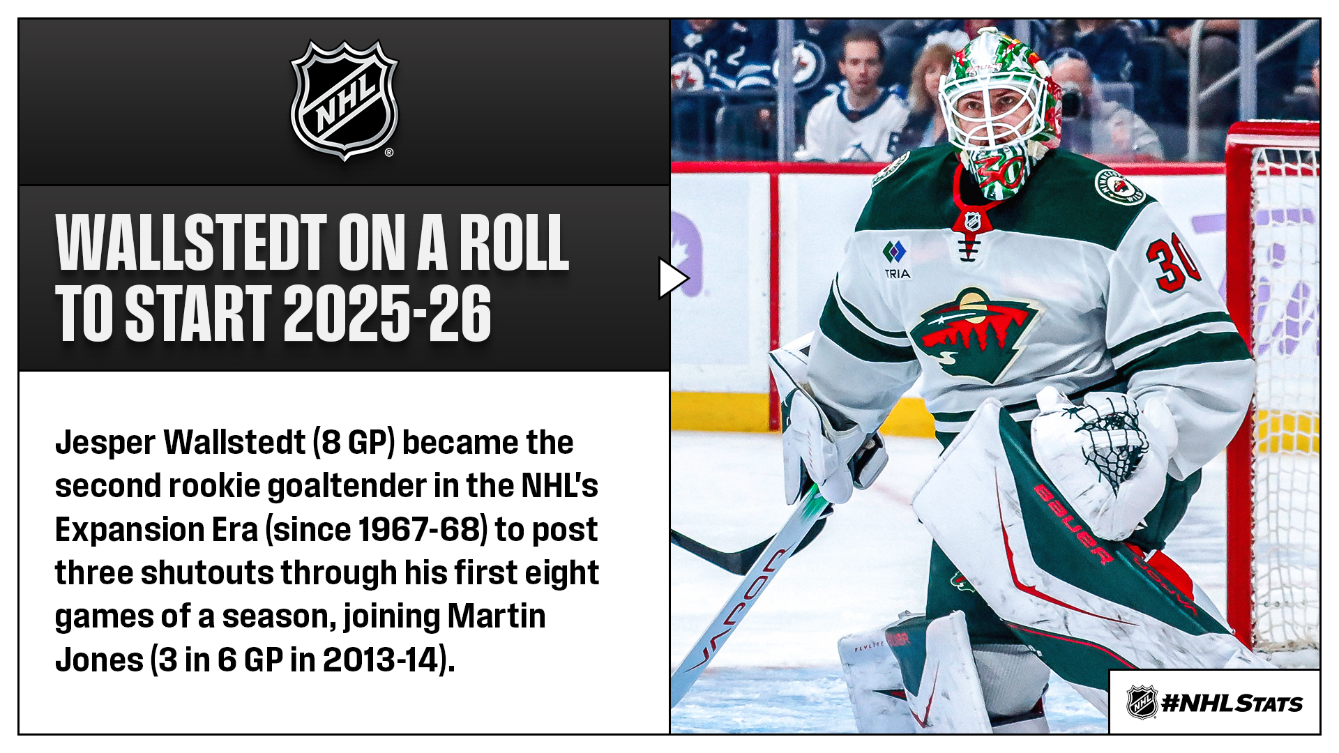 Jesper Wallstedt shut out the Jets and became the fourth-youngest goaltender in NHL history with a season-opening point streak of at least eight games.
