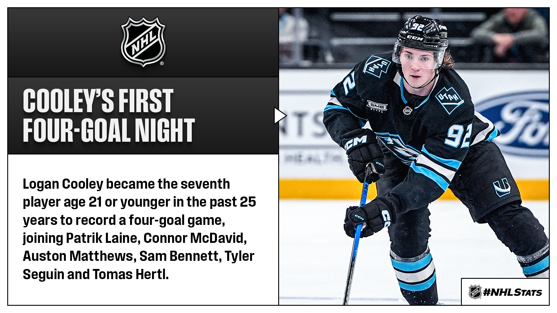 * In addition to scoring the franchise’s first four-goal game, Cooley also became the first Mammoth player to net multiple hat tricks and the second to register a five-point game, joining Clayton Keller (1-4—5 on Feb. 27, 2025).