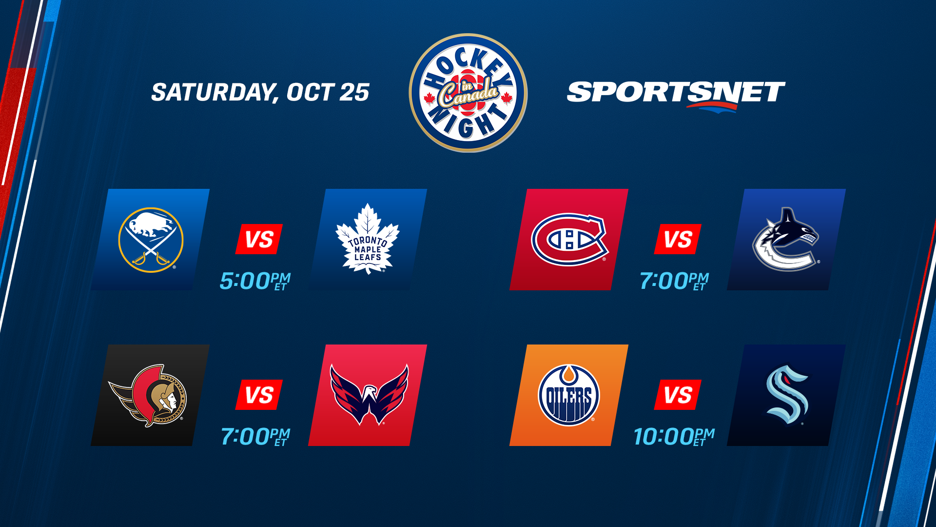 A pair of matinees carried nationally by Sportsnet (Canada) and NHL Network (U.S.) lead into an early Hockey Night in Canada start, which begins at 5 p.m. ET on Sportsnet when the Sabres look to sweep their back-to-back, home-and-home set against the Maple Leafs.