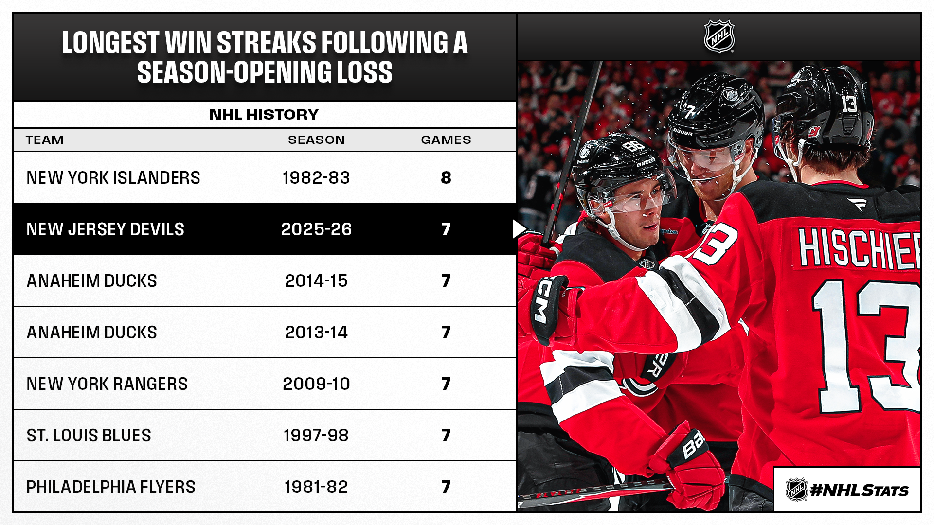 * Dougie Hamilton became the latest Devils defenseman with a game-winning goal as New Jersey improved to 7-0-0 in its last seven contests.