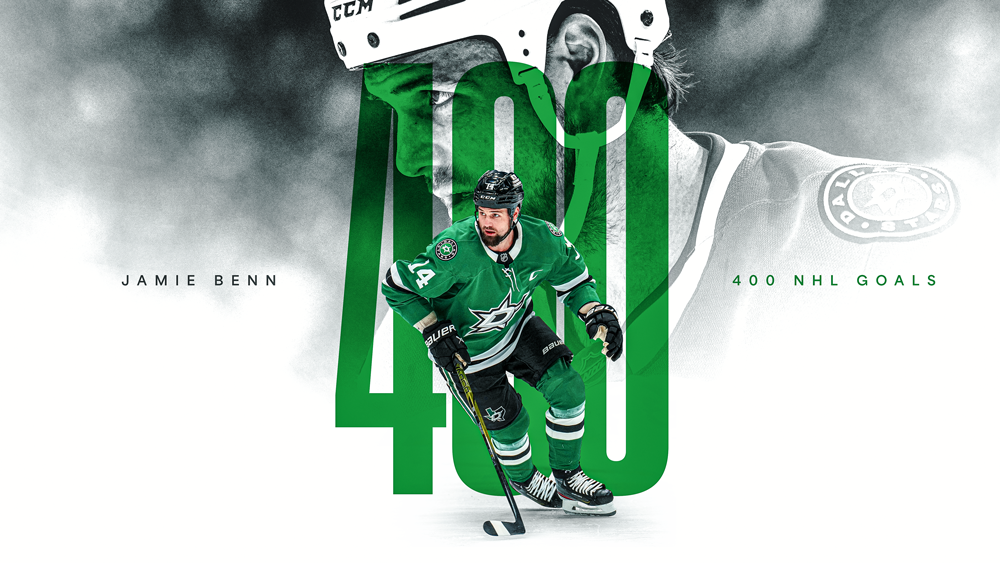 * Benn (5th Round in 2007), who joined Mike Modano (557) as the second player in franchise history to score 400 career goals, also became the 14th player, selected in the fifth round of the NHL Draft or later, to reach the milestone. Only three others have done so since the 1990 Draft: Joe Pavelski (476, 7th Round in 2003), Daniel Alfredsson (444, 6th Round in 1994) and Peter Bondra (503, 8th Round in 1990).