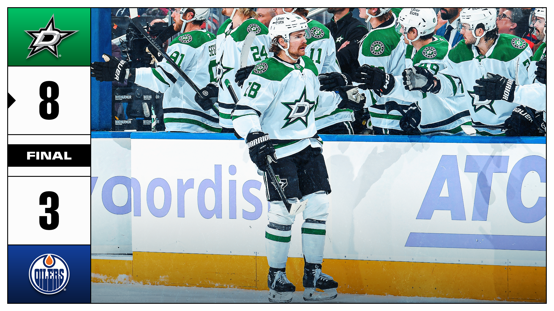 Jason Robertson, Wyatt Johnston and Jamie Benn all produced monumental moments in the Stars’ eight-goal outburst at Rogers Place, with Robertson finding the back of the net for the seventh straight game and Benn doing so for the 400th time in his career.