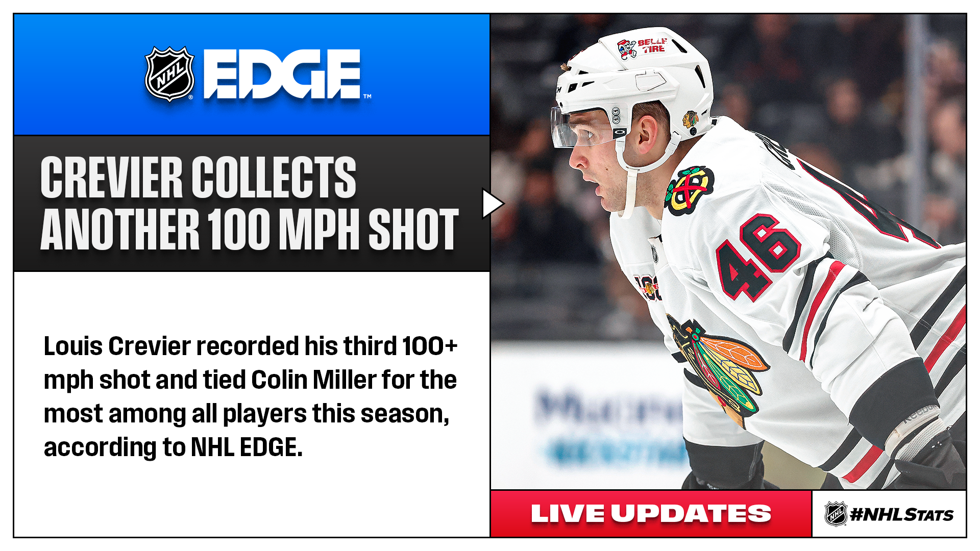 * The Stars scored a tying goal in each of the first two periods but Tyler Bertuzzi (2-0—2) helped the Blackhawks draw even in the third period before Chicago captured a shootout victory and ended a four-game winless streak at American Airlines Arena dating to Dec. 29, 2023. The contest also featured a 100.48 mph shot by Louis Crevier – his third shot of 100+ mph in 2025-26.
