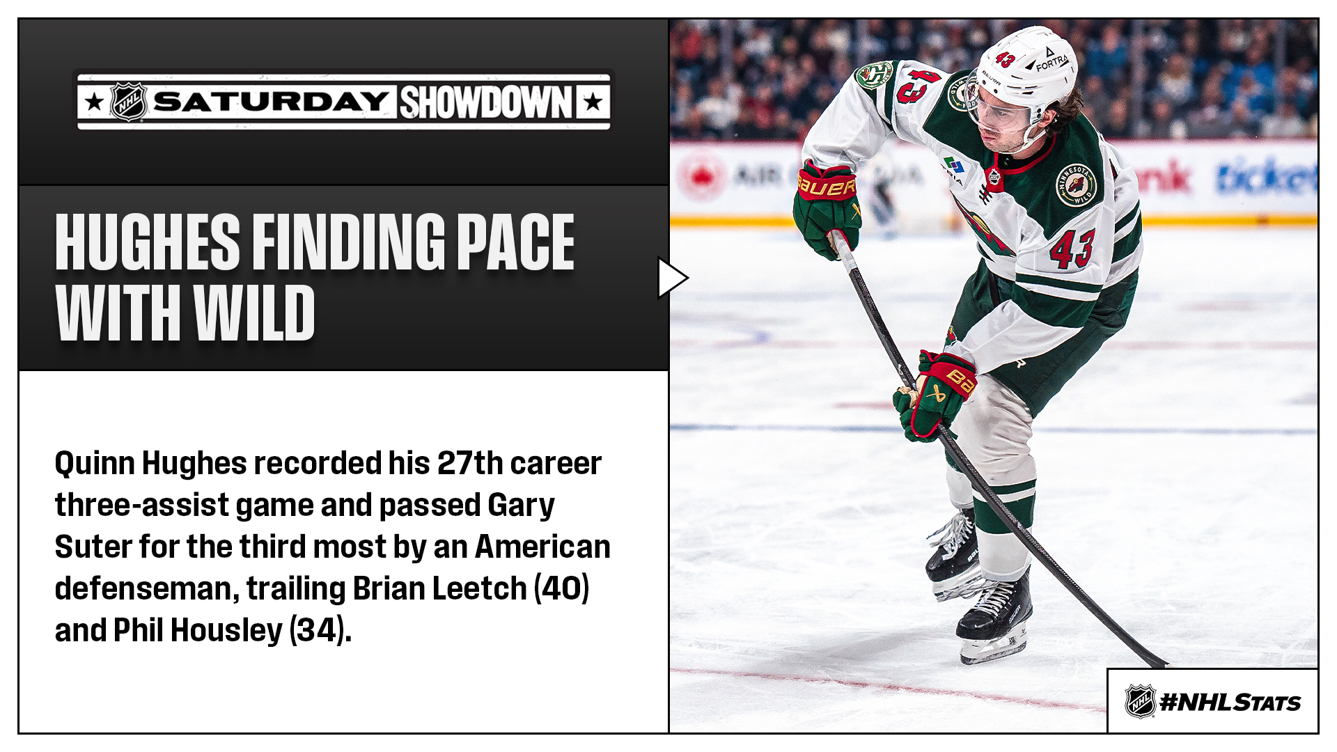 * Hughes collected 0-3—3 in his seventh game with Minnesota and became the fastest defenseman to record their first three-assist performance from the start of their tenure with the franchise, besting the mark set by Brad Bombardir (13 GP in 2000-01). Only two active blueliners have recorded a three-assist outing in fewer games with a franchise: Henri Jokiharju (3 GP w/ CHI) and Pierre-Olivier Joseph (5 GP w/ PIT).