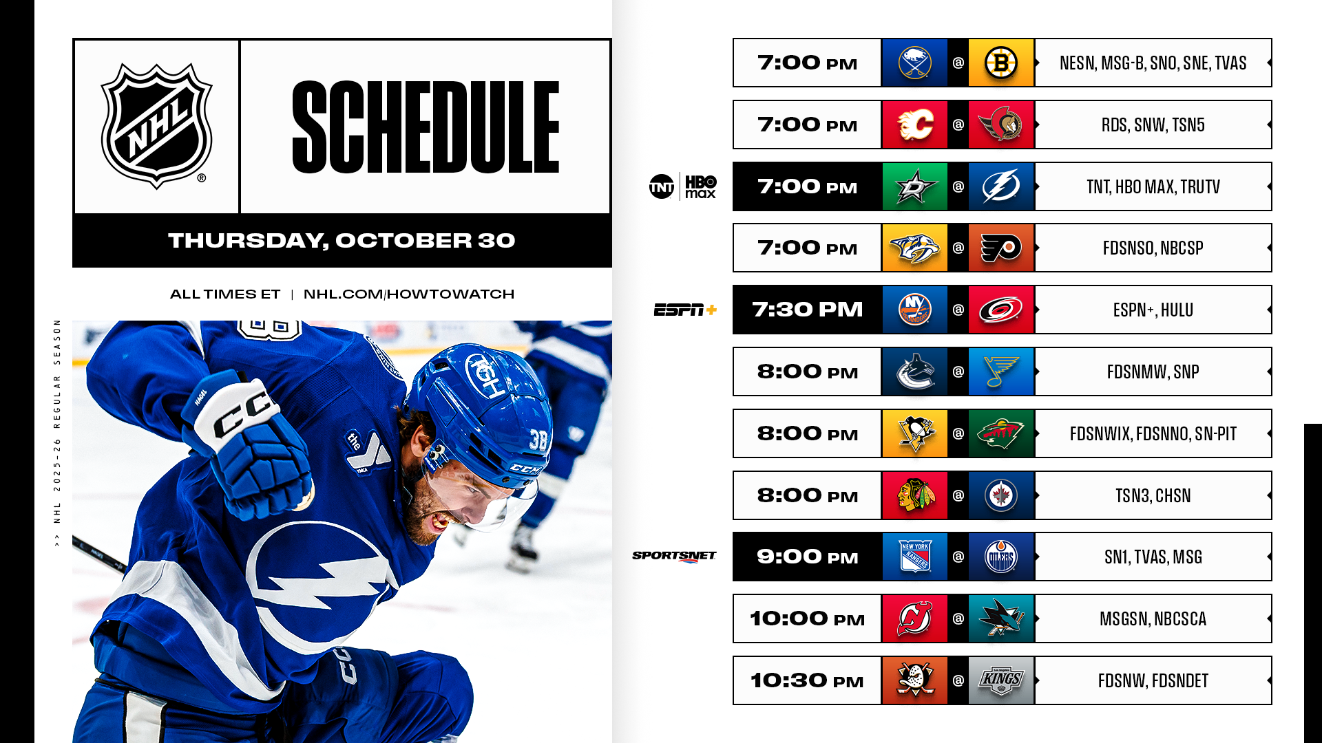 * Thursday’s 11-game schedule features an NHL on TNT tangle between the Stars and Lightning as well as the return of NHL Coast to Coast on Prime Video Canada.