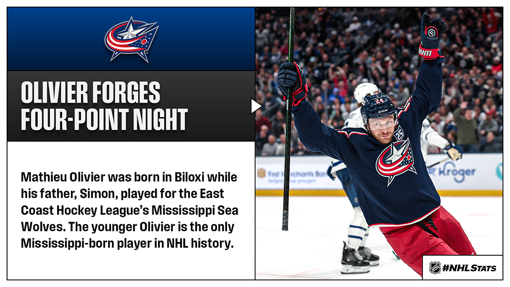 The line of Mathieu Olivier (1-3—4), Charlie Coyle (0-4—4) and Cole Sillinger (2-1—3) combined for 11 points as the Blue Jackets improved to 6-4-0 (12 points) on the season including three consecutive wins. Olivier’s four points were a single-game career high, besting his previous mark of three from Feb. 18, 2023.