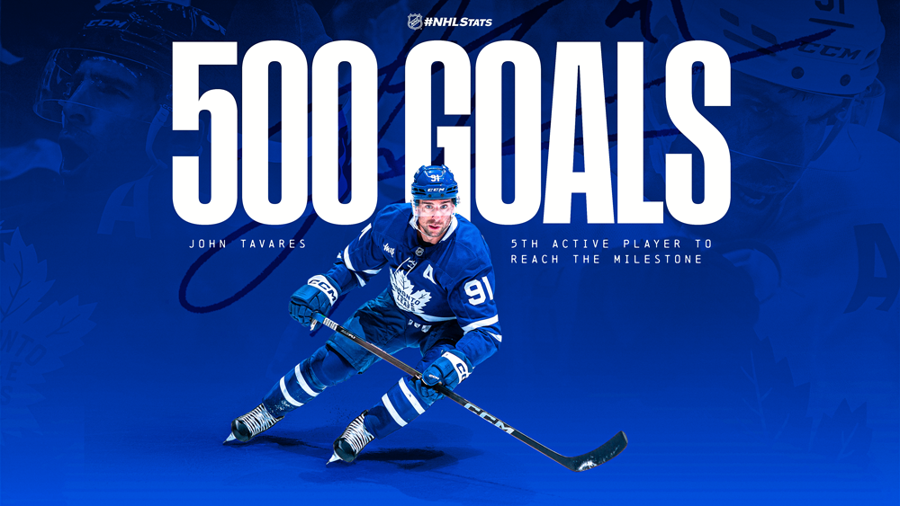 * John Tavares tallied a third-period marker and became the second player to reach the 500-goal milestone while playing for Toronto (also Mats Sundin on Oct. 14, 2006). Wednesday’s edition of #NHLStats: Live Updates featured more notes on Tavares as well as Olivier, Coyle and Sillinger.