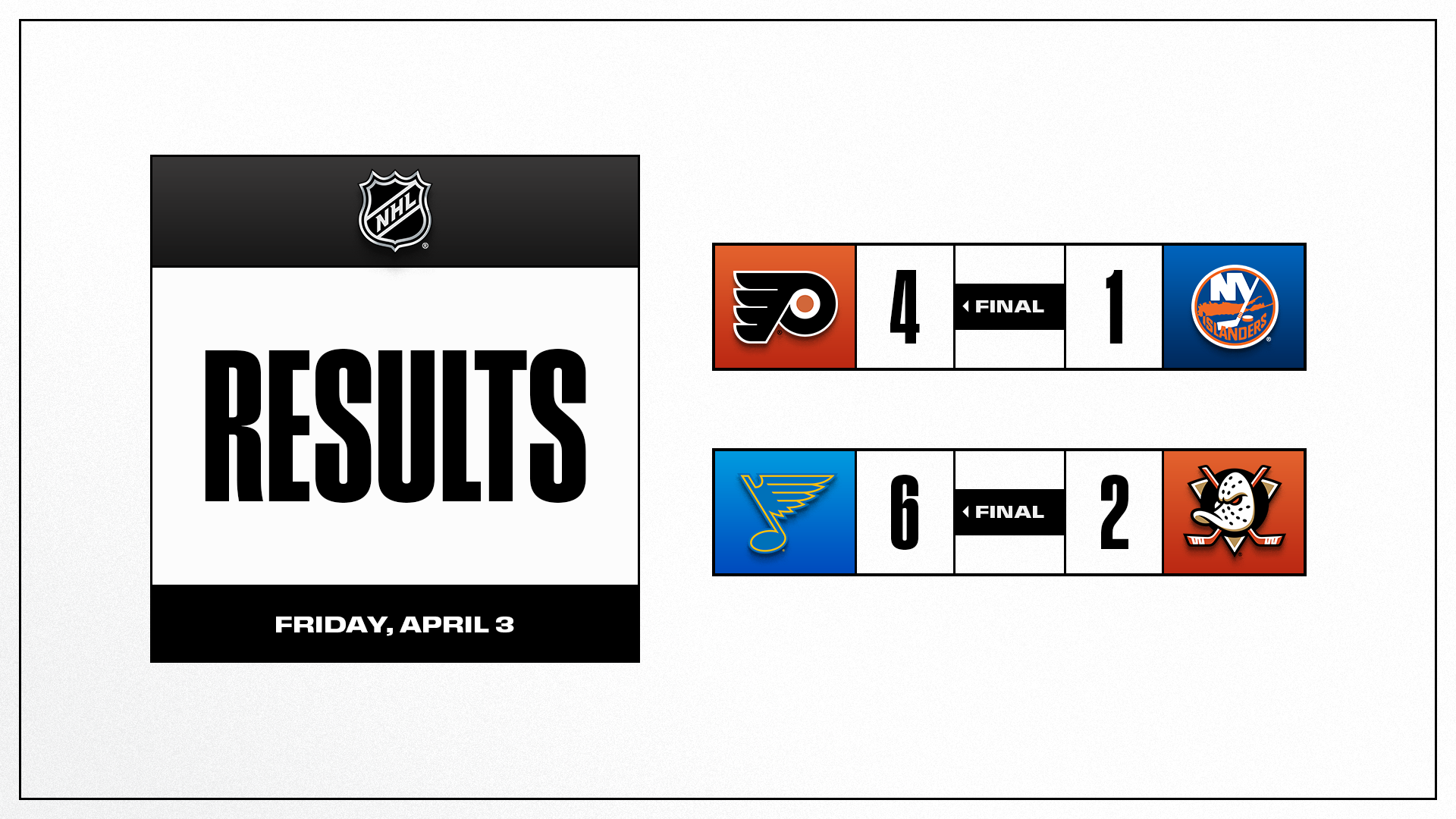 Matvei Michkov (1-2—3) factored on three of four Philadelphia goals as the Flyers (38-26-12, 88 points) earned a vital regulation win against the Metropolitan Division-rival Islanders (42-30-5, 89 points). Philadelphia and New York are two of five teams in the Eastern Conference separated by one point, and two of six separated by four points.