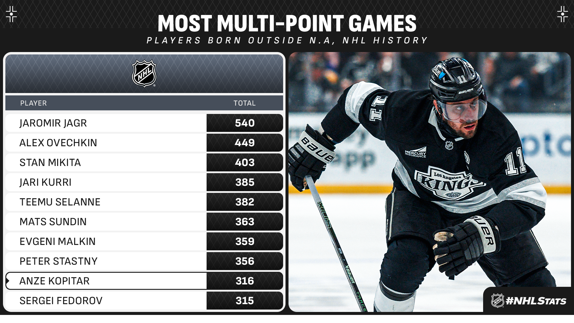 KOPITAR HELPS KINGS SET FRANCHISE RECORD ON ESPN