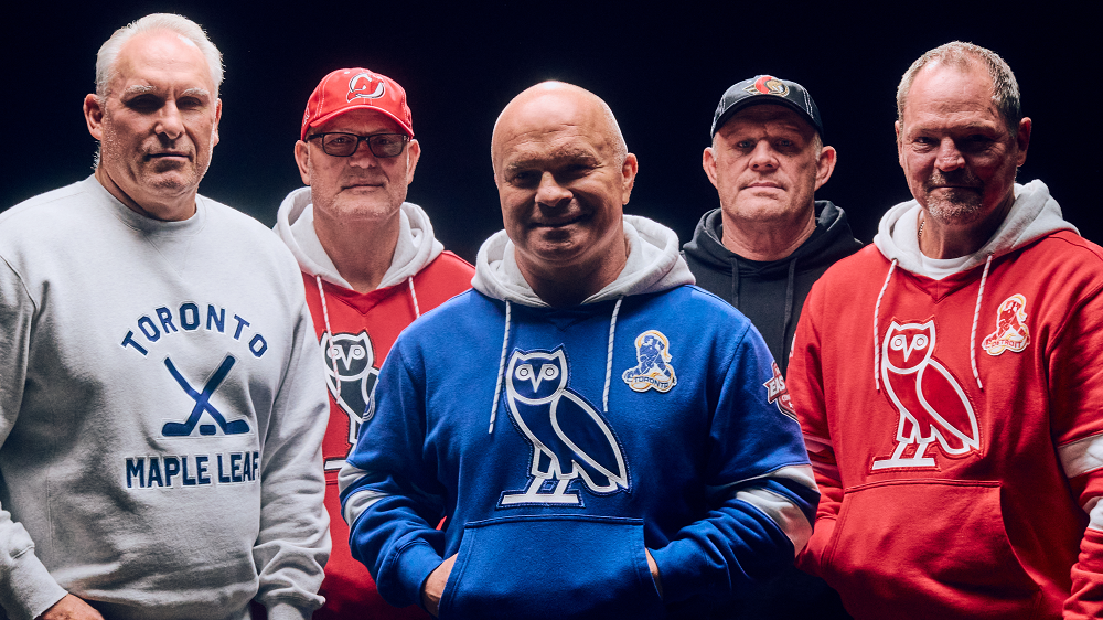 The NHL and October’s Very Own (OVO), the Canadian lifestyle brand co-founded by Aubrey “Drake” Graham, Oliver El-Khatib, and Noah “40” Shebib, unveiled a new limited-edition collection of NHL-licensed apparel, outerwear and hats. The campaign for the collection features former NHL players Tie Domi, Ken Daneyko, Joe Kocur, Rob Ray and Craig Berube. Starting today, fans can purchase the collection at NHLShop.com, NHLShop.CA, the NHL Shop NYC store in Manhattan, respective team shops, octobersveryown.com and October’s Very Own stores around the world.