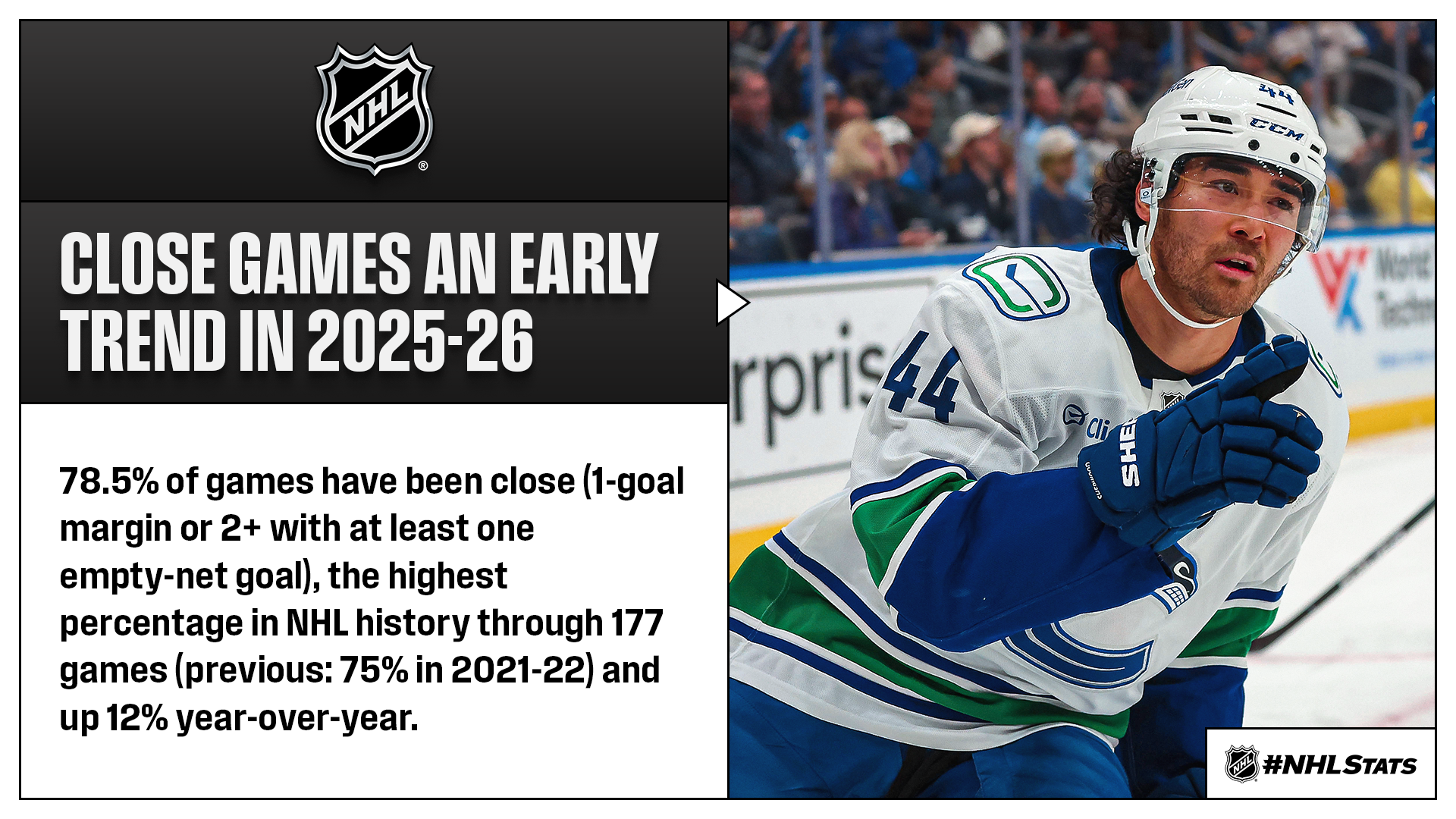 The Senators, Bruins, Lightning, Canucks, Rangers and Red Wings all required more than 60 minutes to defeat their opponents Thursday as close games continued to define the opening month of the season.