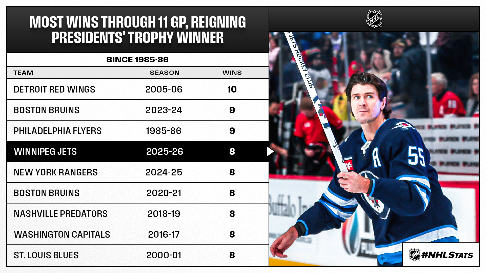 The Penguins (8-2-2, 18 points) and Jets (8-3-0, 16 points) both made moves up the NHL standings thanks to notable performances from star players: