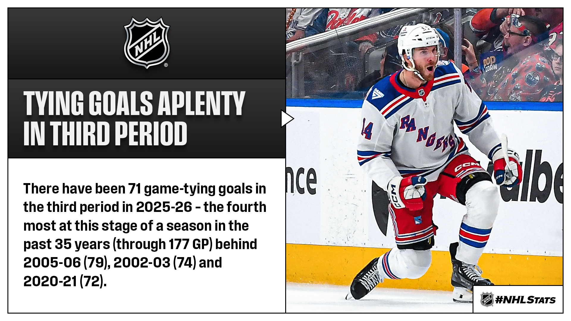 * Taylor Raddysh netted the tying tally in the third period and J.T. Miller scored the overtime winner to help seal the Rangers’ first multi-goal, third-period comeback victory since Feb. 18, 2024 – a 6-5 win against the Islanders at the 2024 Navy Federal Credit Union NHL Stadium Series. Miller notched his 15th career overtime goal and tied Johnny Gaudreau for the second most in NHL history among American players, behind only Max Pacioretty (16).