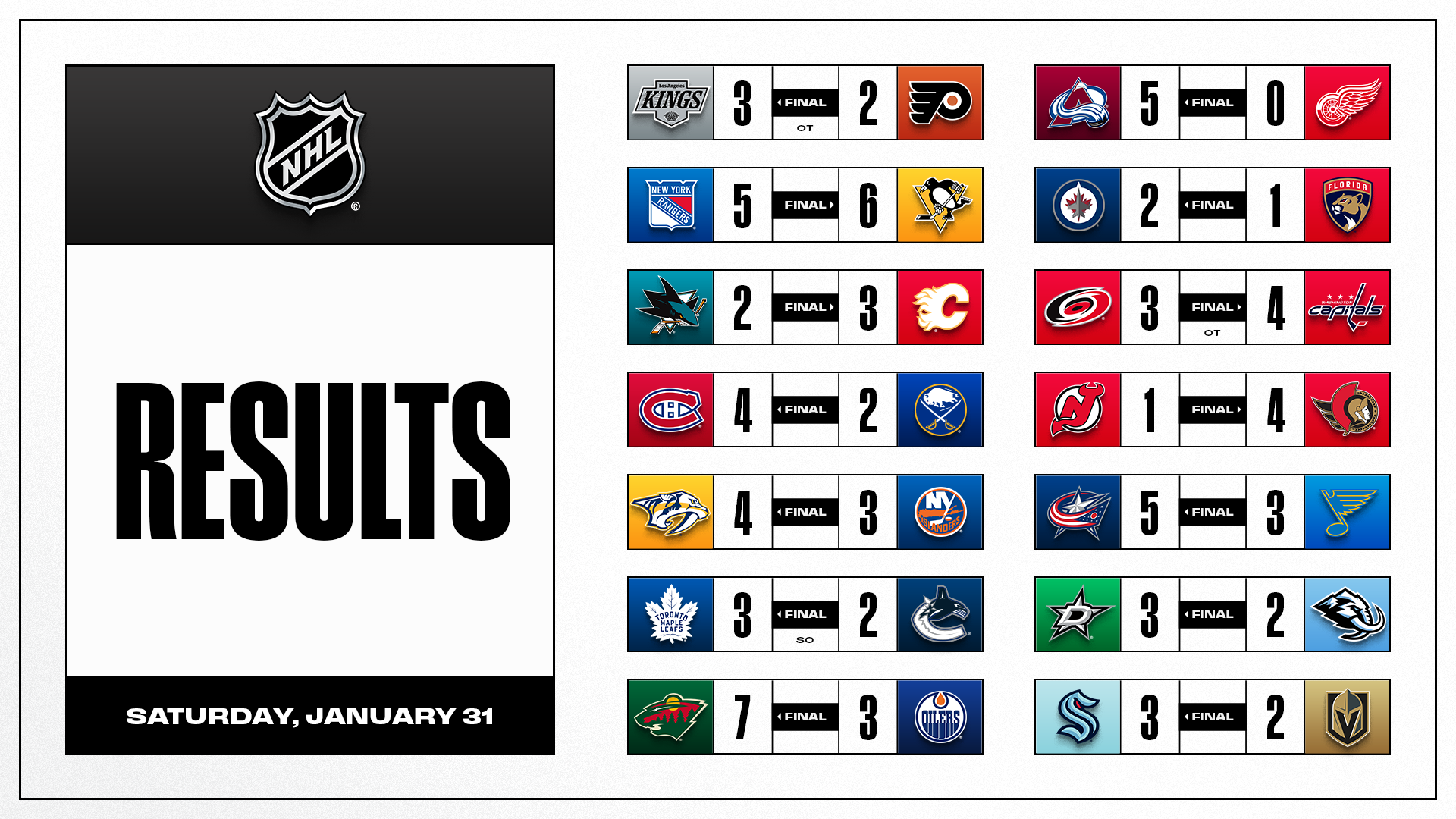 * More information is available in the #NHLStats Pack and Feb. 1 edition of #NHLStats: Live Updates.