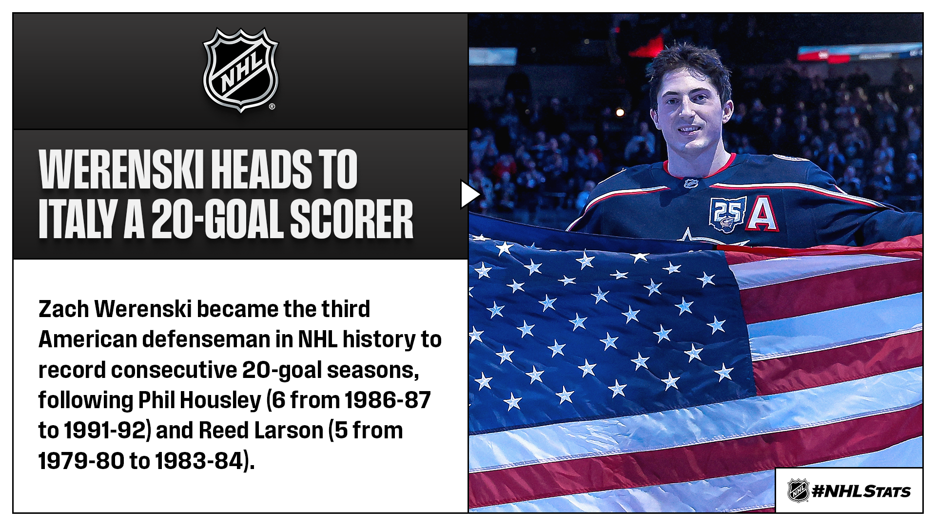 Another 20-goal season from Zach Werenski lifted the Blue Jackets to their seventh straight win – extending the NHL’s longest streak. Inspired in part by the recent “Miracle on Ice” documentary, Werenski is taking an early flight to the Olympic Winter Games Milano Cortina 2026 to attend the Opening Ceremonies and capture the full experience.