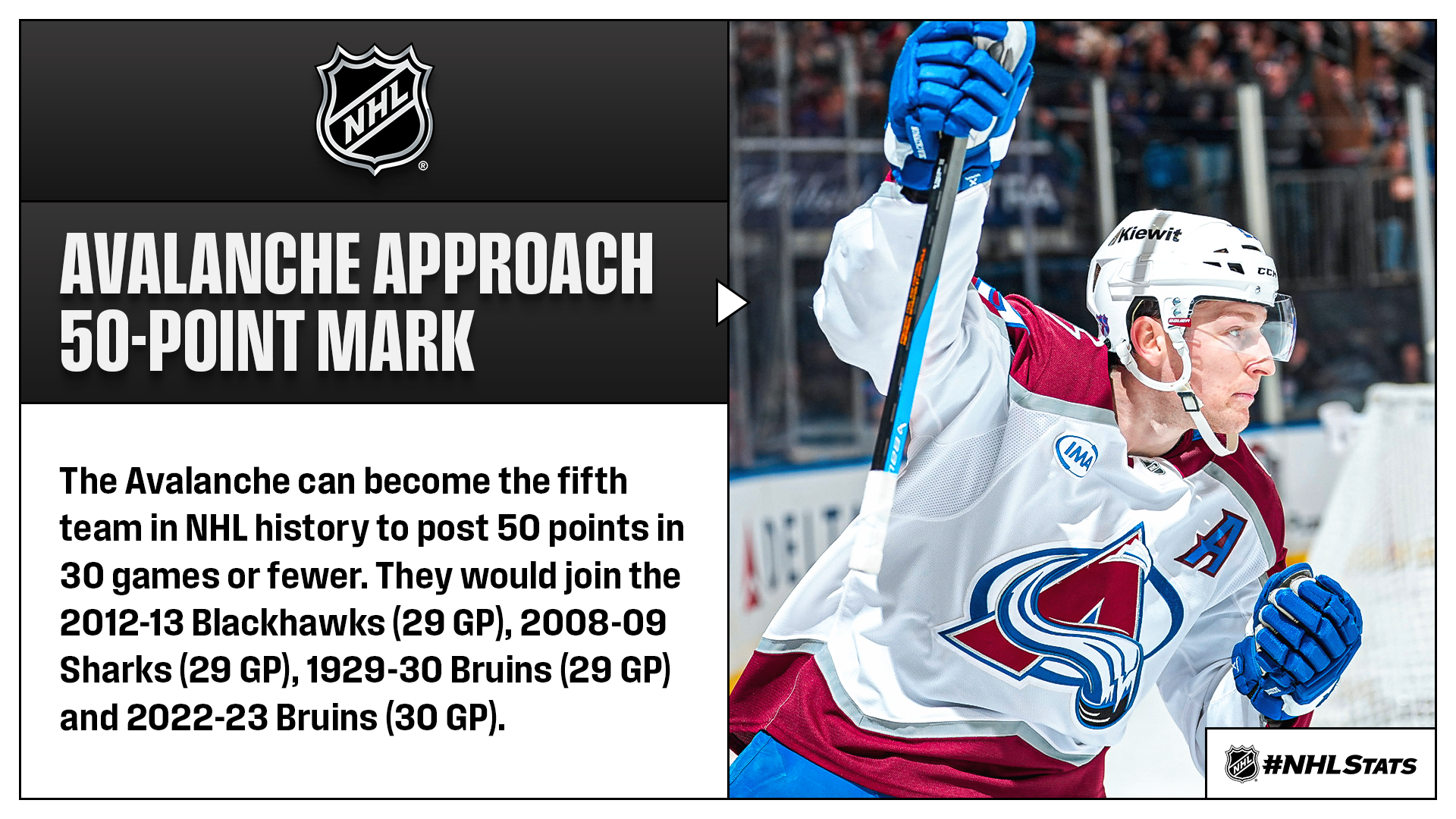 MacKINNON, AVALANCHE CLOSE IN ON 50-POINT MARK DURING TNT DOUBLEHEADER