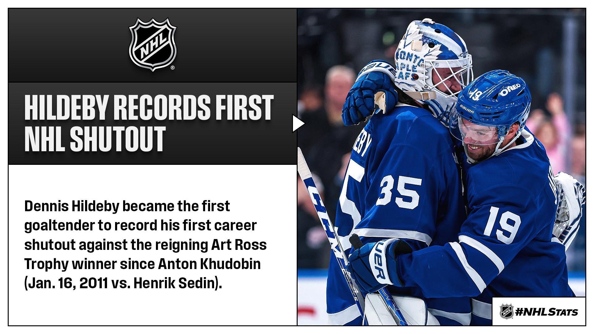 * Matthews scored his 413th career goal to climb within eight of surpassing Sundin (420) as Toronto extended its point streak to five games (4-0-1 since Nov. 29). Dennis Hildeby turned aside all 29 shots he faced – including two by Lightning star Nikita Kucherov – to record his first career shutout, while Morgan Rielly recorded his 17th game winner to pass Hap Day and Tomas Kaberle (both w/ 16) for second place on the franchise’s all-time list among defensemen.
