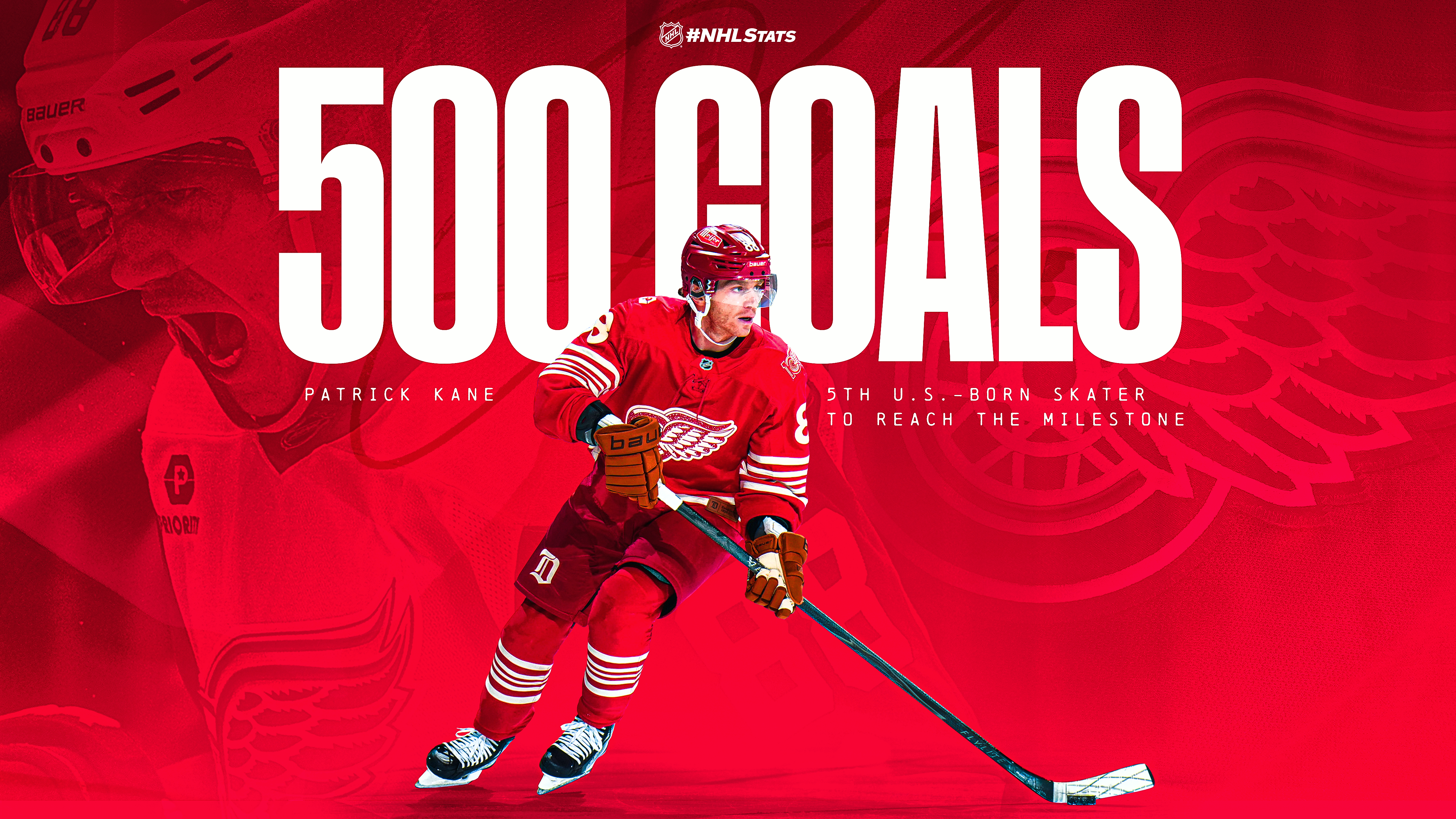 Patrick Kane became the fifth U.S.-born player in NHL history to reach the 500-goal milestone and the first since Keith Tkachuk nearly 18 years ago (April 6, 2008) as the Red Wings skated to victory on Thursday.