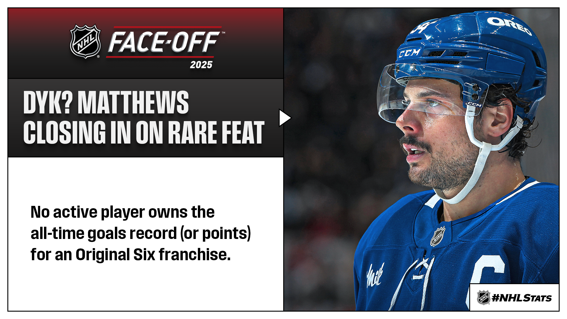 * Auston Matthews (401) enters 2025-26 within 20 goals of overtaking Maple Leafs legend Mats Sundin (420) for the franchise record. His career totals began with a four-goal performance in his first-ever season-opening game (Oct. 12, 2016) and has since grown to 12 career goals in that scenario, which includes another hat trick to start 2023-24 (Oct. 11, 2023); no player in NHL history owns three career hat tricks in season-opening games (also Connor McDavid & Anze Kopitar w/ 2).