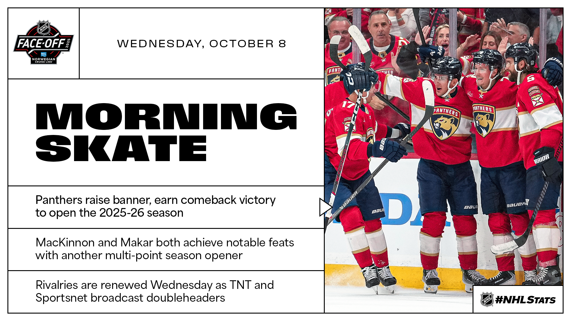 * For notes on each team set to take the ice on the second night of the 2025-26 season, check out the Oct. 8 edition of #NHLStats: Live Updates.