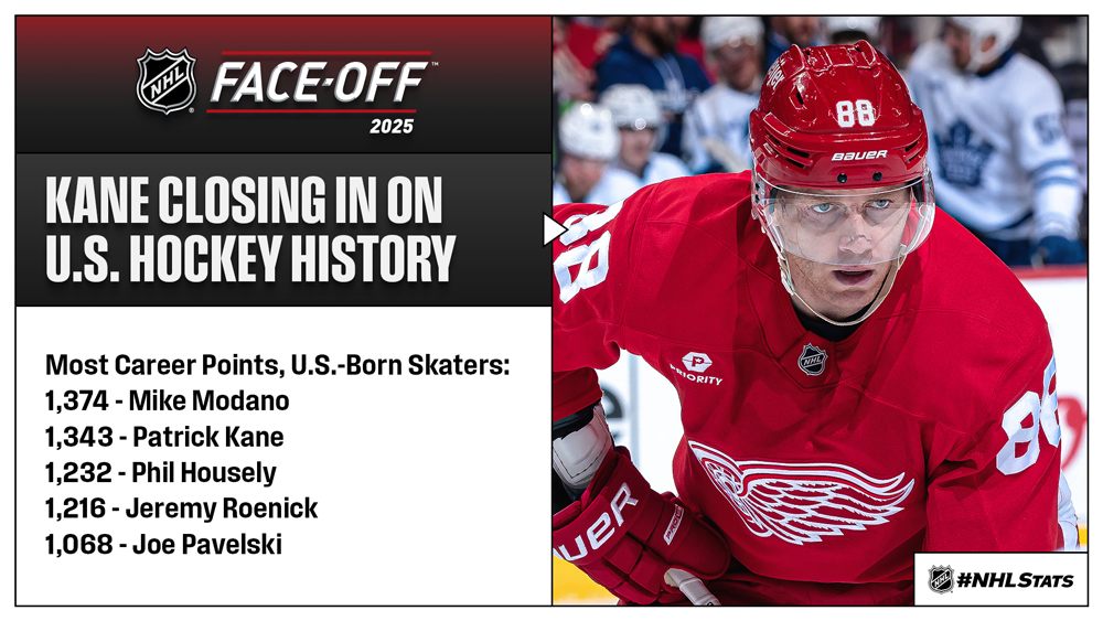 Veteran Red Wings forward Patrick Kane will make his season debut with a couple of big milestones on the horizon in 2025-26. Kane needs eight tallies to become the fifth U.S.-born player in NHL history to reach the 500-goal milestone and 32 points to surpass Mike Modano (1,374) as the highest-scoring U.S.-born player in NHL history. Modano has held the mark since passing Phil Housley on Nov. 7, 2007.