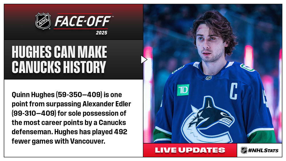 The show will cover all 14 games in real-time once the puck drops on the first game, while Thursday’s edition of #NHLStats: Live Updates will also feature pre-game and in-game notes for all contests including Quinn Hughes chasing looking to own a Canucks franchise record.