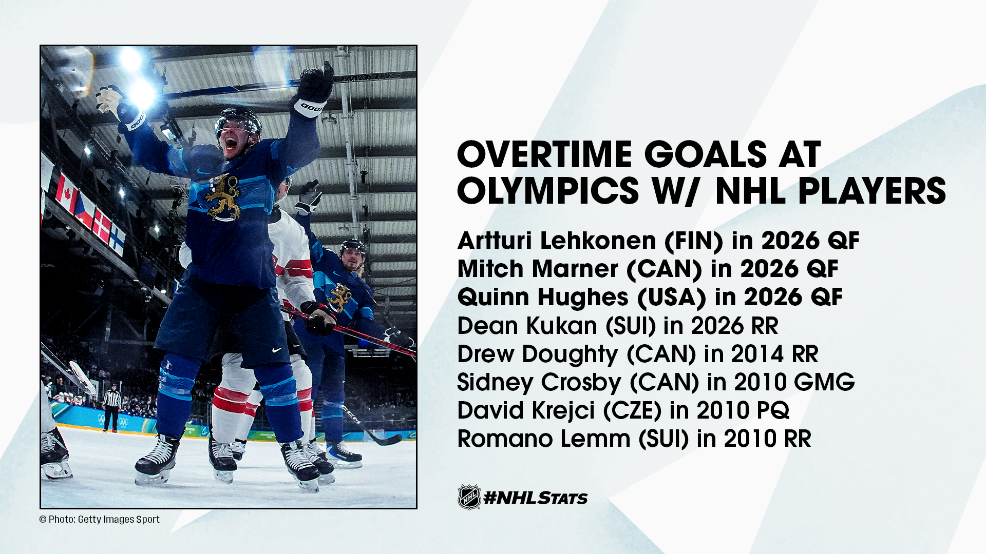 Team Finland and Avalanche forward Artturi Lehkonen was one of three NHL players to score an overtime winner Wednesday (also Mitch Marner w/ CAN & Quinn Hughes w/ USA), which marked the first day to feature multiple overtime games during an Olympic tournament with NHL participation. Friday’s semifinals will see Team Finland face off against Team Canada, while Team USA collides with Team Slovakia.