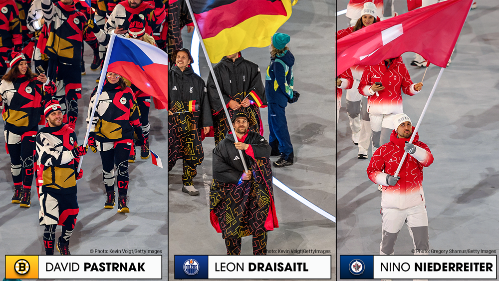 * NHL players arrived in Milan over the weekend, with three serving as flag bearers for the 2026 Winter Olympics Opening Ceremony and another four named captain: Penguins forward Sidney Crosby (Team Canada), Maple Leafs forward Auston Matthews (Team USA), Avalanche forward Gabriel Landeskog (Team Sweden) and Ducks forward Mikael Granlund (Team Finland).