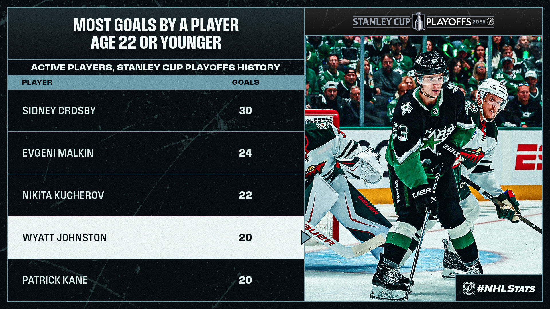 * Johnston moved into a tie with Jere Lehtinen (8) for the second-most game-opening goals in the playoffs in franchise history behind Mike Modano (13). He also became the second Stars/North Stars player age 22 or younger to record 20 career playoff goals, joining Steve Payne (24) and required the sixth-fewest contests to reach that plateau among players to debut with the franchise.