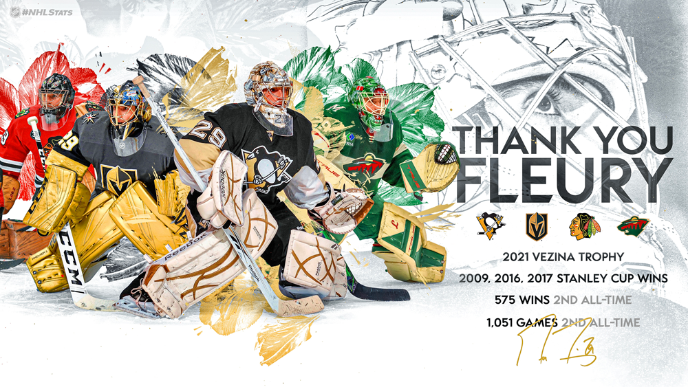 * Fleury appeared in his 18th postseason when he relieved Filip Gustavsson at the start of the third period in Game 5 to pass Martin Brodeur and Patrick Roy (both w/ 17) for the most years in the playoffs by a goaltender in NHL history. Fleury retired trailing only Brodeur on the League’s all-time lists for most wins and games played.