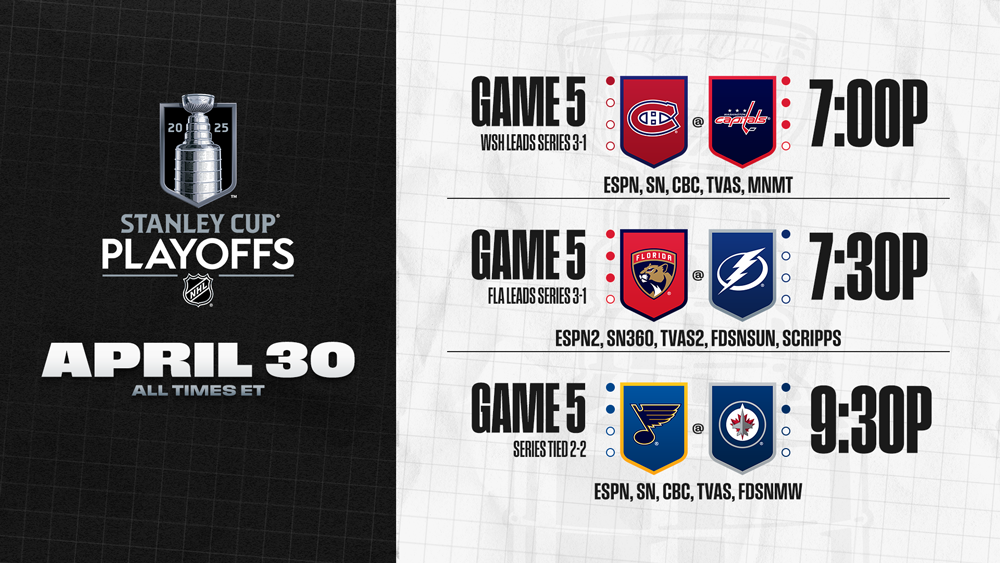 * In a resurgent Capitals season that saw captain Alex Ovechkin complete The Gr8 Chase to set a new all-time NHL goals record and the team go from last to clinch a playoff spot in 2024 to the top seed in the Eastern Conference in 2025, Washington looks to carry that momentum to a Game 5 victory on home ice that would stand as their first series win since capturing the 2018 Stanley Cup. On the Montreal side, Cole Caufield has scored in three of the first four games of the series – including Game 1 in Washington – after finishing second in the 2024-25 regular season with 24 road goals and will look for more road production to help Montreal stave off elimination.