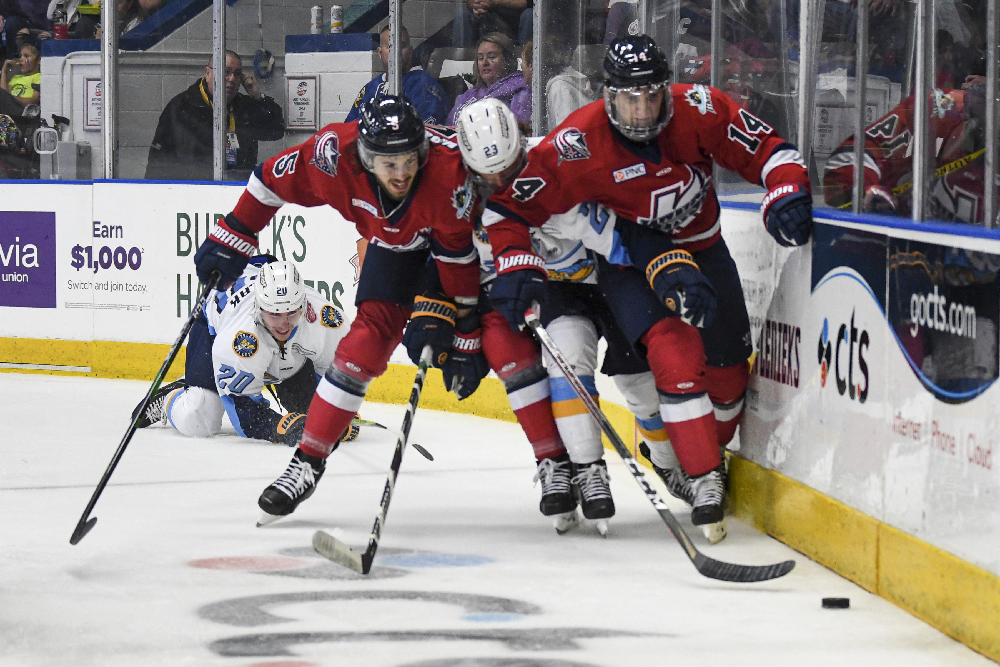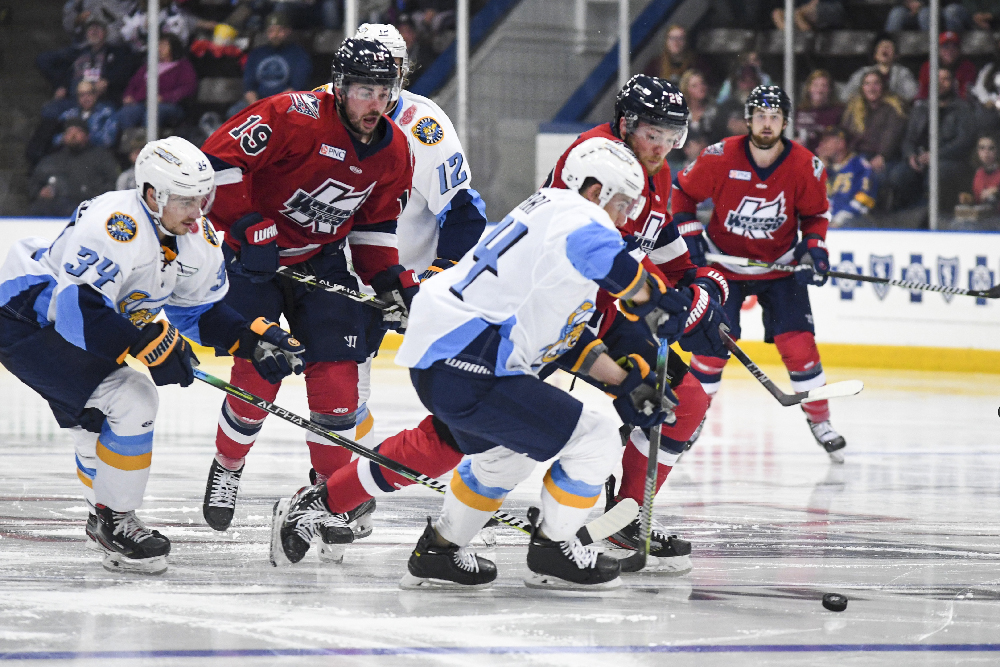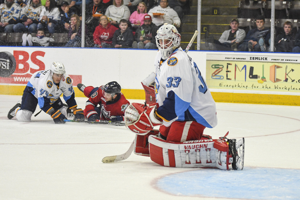 Toledo responded with a power play goal from Gordi Myer, followed by a one-timer from John Albert just 35 seconds apart to tie the score. Brenden Miller broke the deadlock with a blast from the left wing boards shortly after the equalizer, and Humitz tapped home his second of the period with 4.5 seconds remaining.