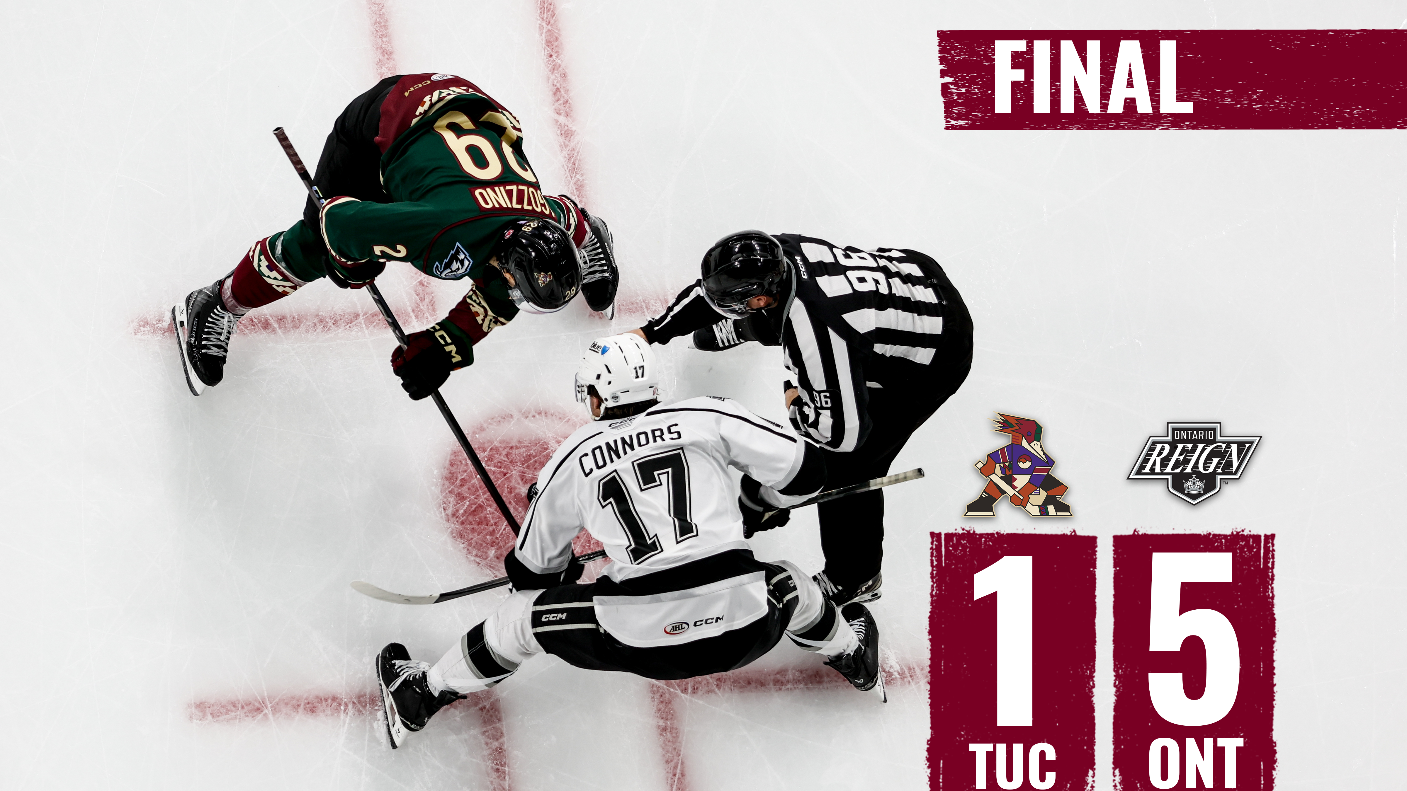 Ontario led wire-to-wire, building a three-goal first-period cushion that proved too much for Tucson to overcome. Jacob Doty opened the scoring just 2:53 into the contest before Martin Chromiak and Glenn Gawdin struck eight seconds apart midway through the frame to give the Reign a 3-0 lead at the 10:34 mark.