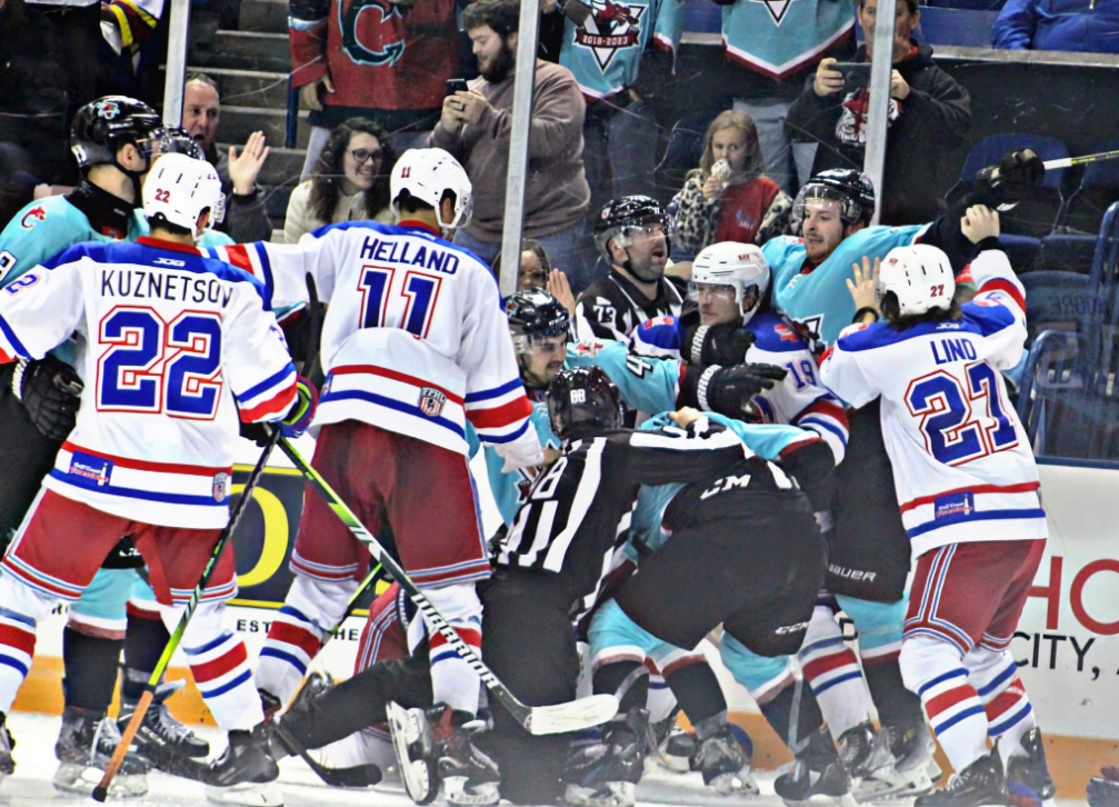 Needless to say the arena was in shock, and after an altercation following the hit, the game was called with the Dragons awarded an 8-1 decision.