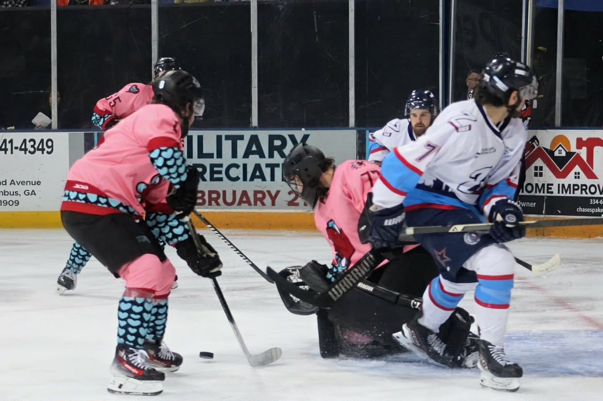 Trevor Babin, returning from his suspension following a brawl with the Pee Dee Ice Cats last weekend, manned the pipes for Columbus. Edward Coffey covered the crease for the Zydeco.