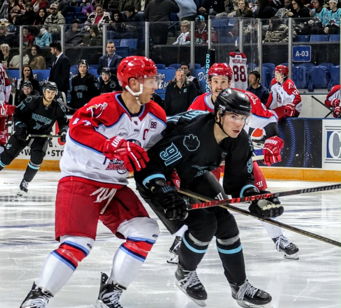 The night ended with the River Dragons taking their first W against the Rock Lobsters this season, claiming victory in regulation, 8-4.