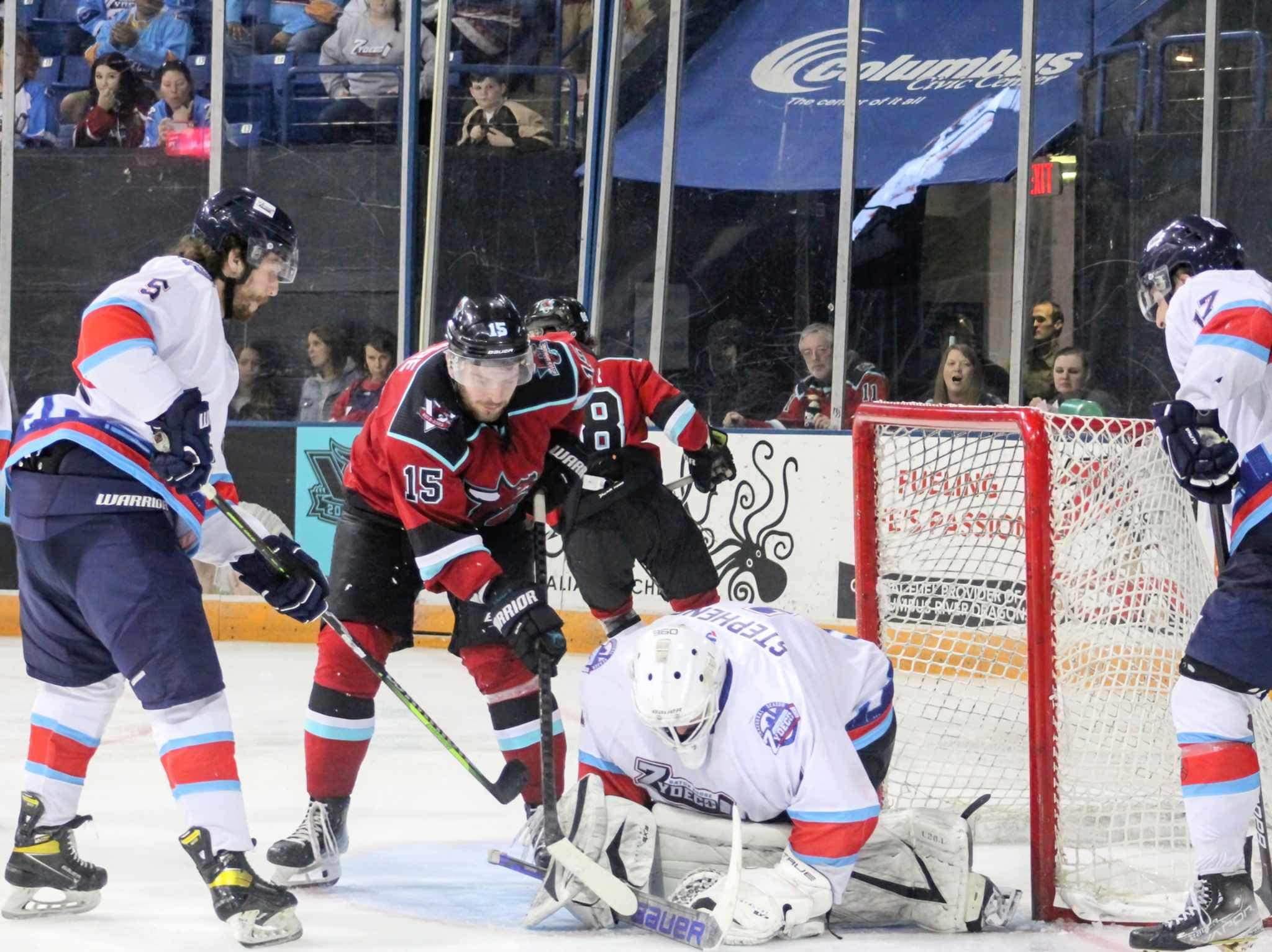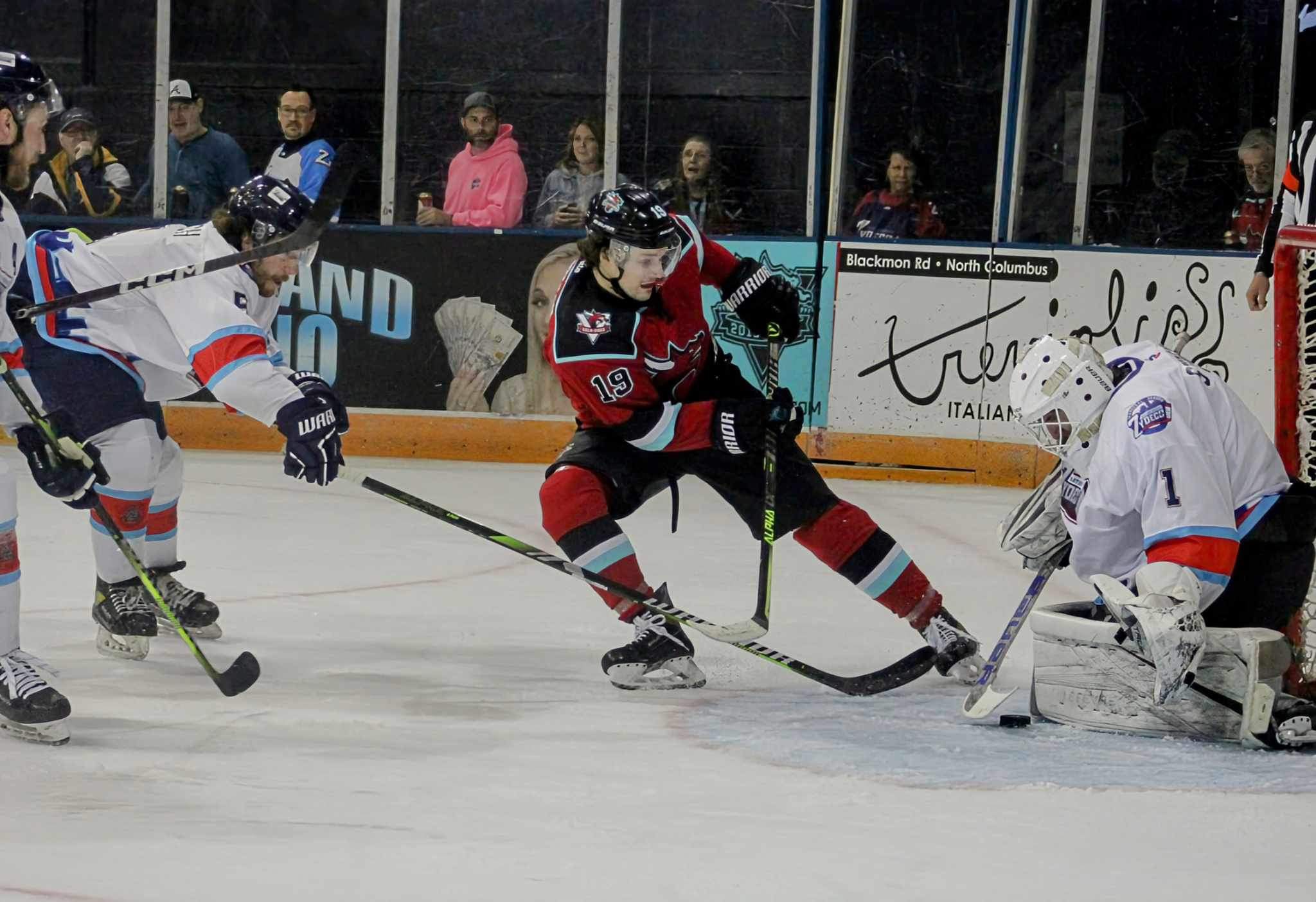 Tonight’s Stars of the Game for the River Dragons included Austin Daae and Ryan Hunter. Daae put up 4 points (2 Goals, 2 Assists). Hunter also scored 4 points for Columbus (2 Goals, 2 Assists).