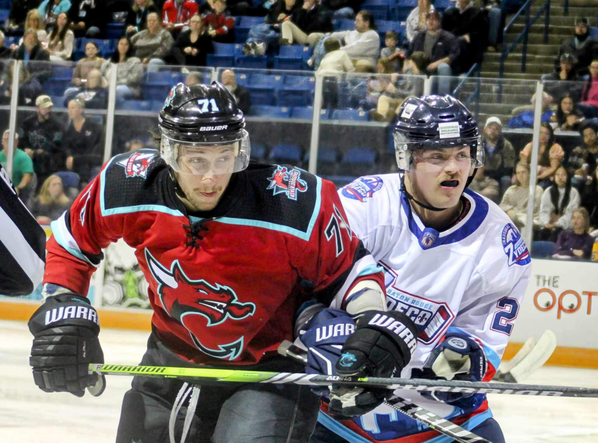 The River Dragons scored twice in the final frame of regulation, with Austin Daae scoring at 10:27 and Ryan Hunter closing things up at 12:13.